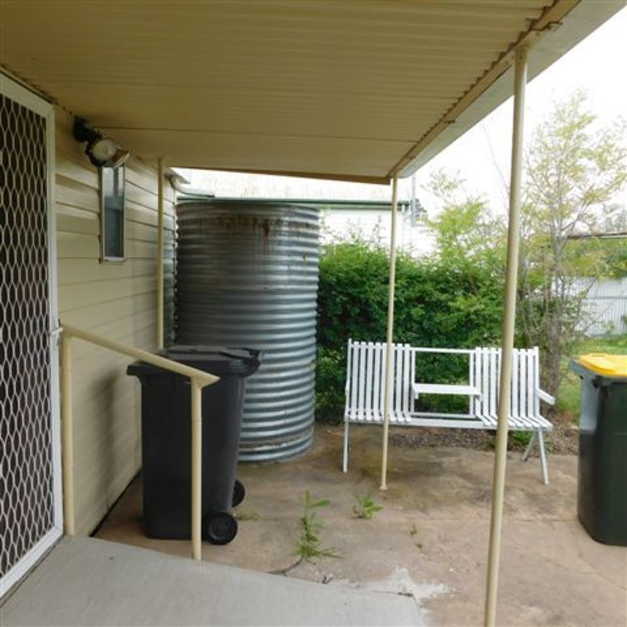 Older style three bedroom with cladding on the exterior, all bedrooms have r/c a/c In them along with ceiling fans, lounge room with open fire place or gas heating,bathroom has a shower only, verandah out the front,separated toilet, linen press,full carpeted, out side laundry, shed with cement floor with work bench, well fenced with established lawns and trees, has back lane access into backyard