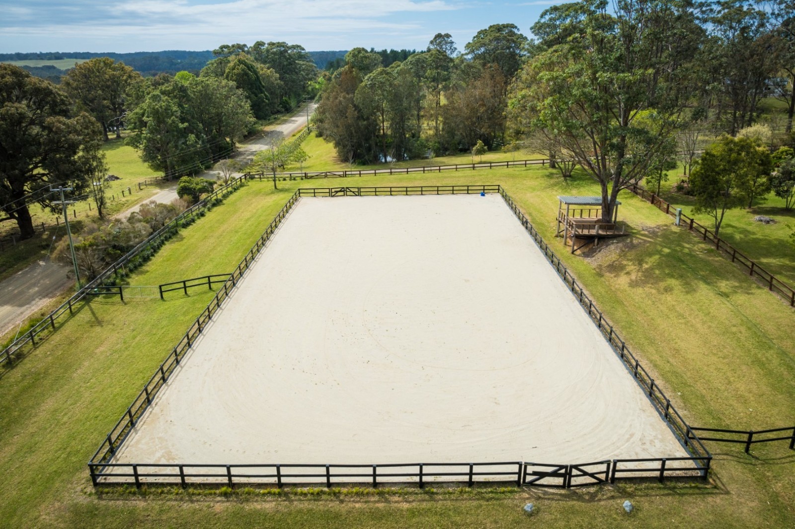 - A modern 3 box stable complex, 60m x 30m dressage arena, machinery shed.