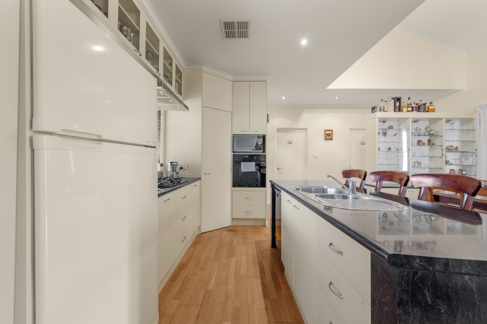 - The kitchen features a dishwasher, gas cooking, in-wall oven and ample storage (including corner pantry)