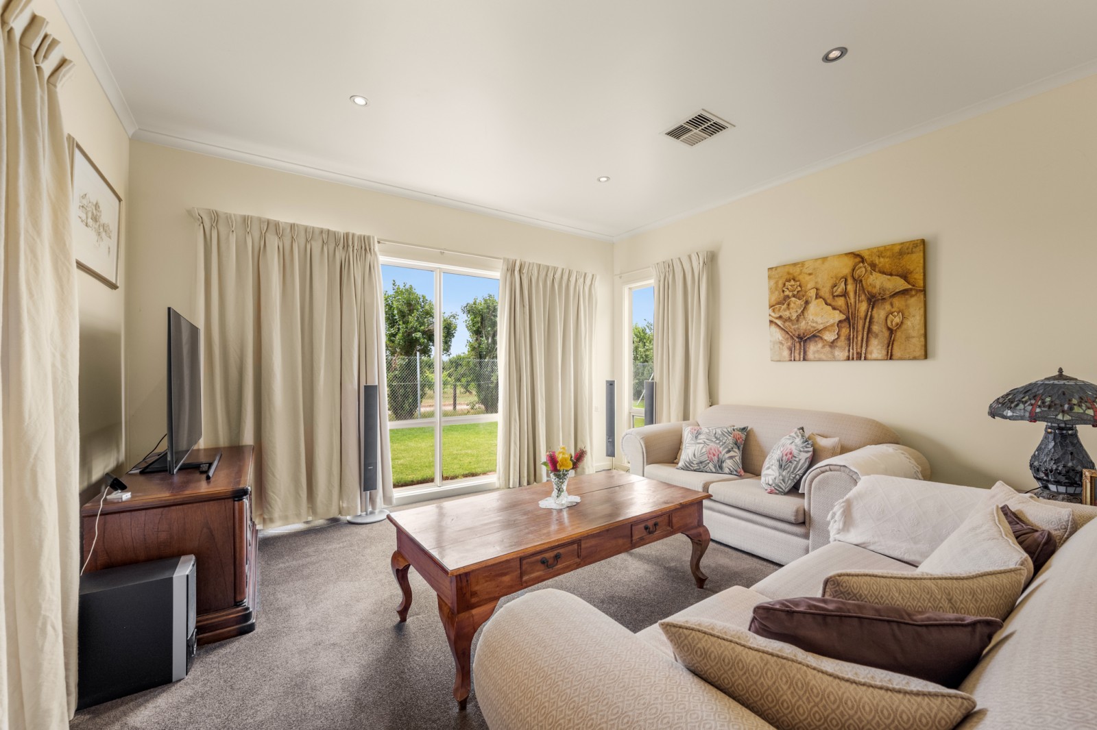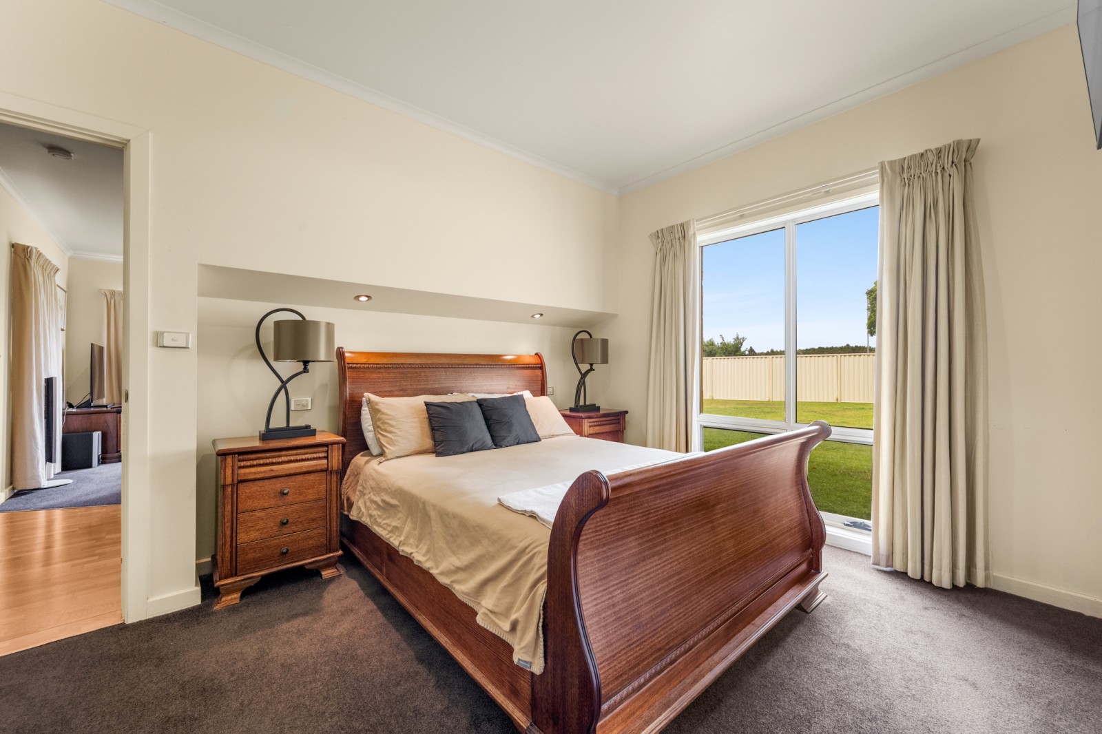 - A cosy lounge with beautiful pure wool curtains (featured throughout the home), once again offering Northern light
