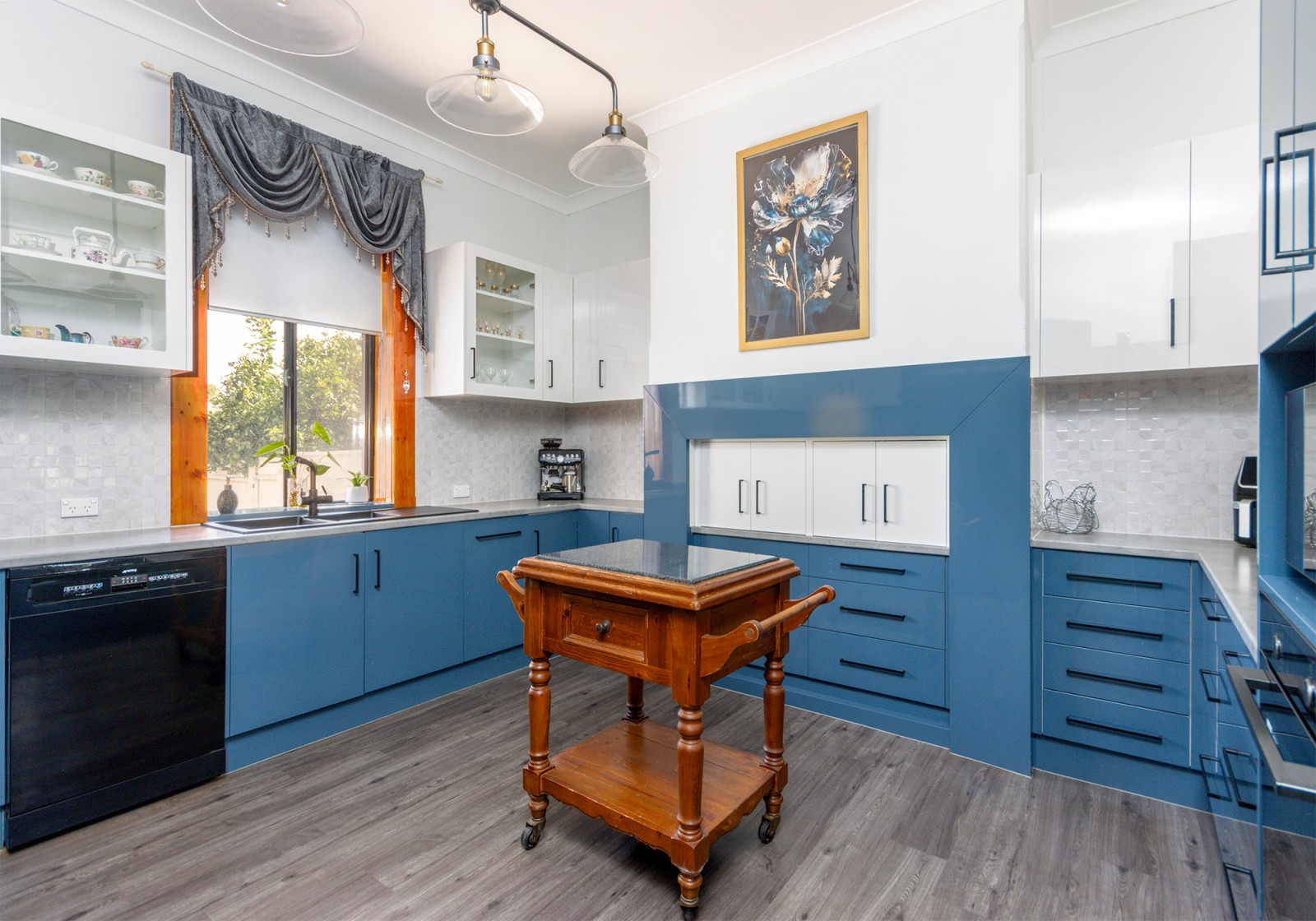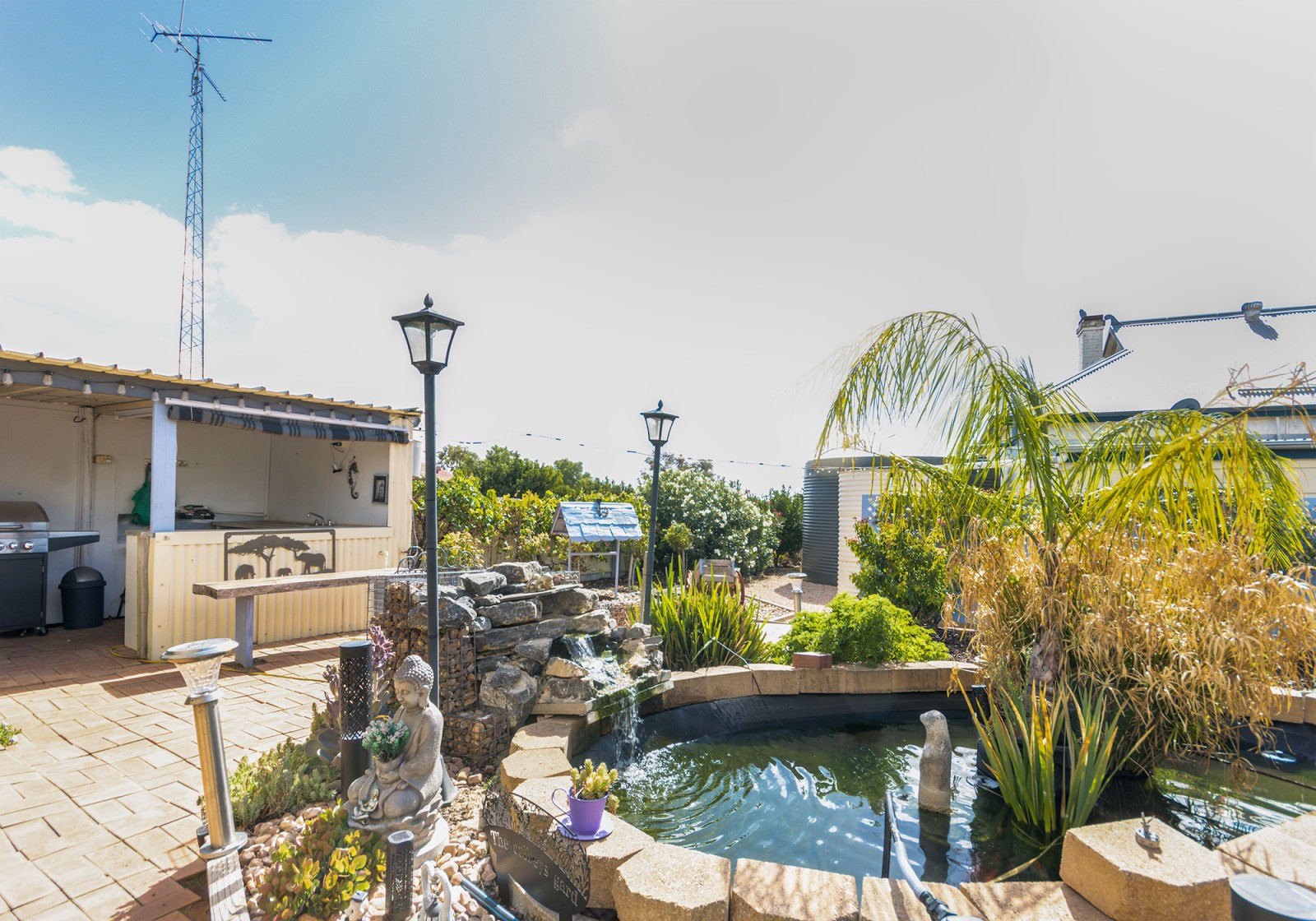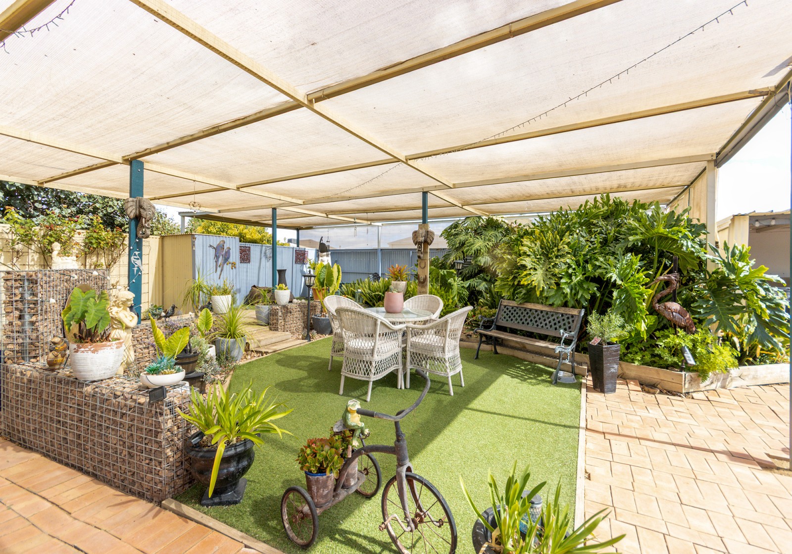 Outdoor living is just as impressive. A shaded, paved entertaining area is surrounded by a lush, verdant garden, where fruit trees, including lemon, apricot, apple, nectarine, peach, orange, mandarin & grapevines—enhance the tranquil setting. The sheltered BBQ area, has its own electric hot water system, ensures seamless entertaining & easy clean up.