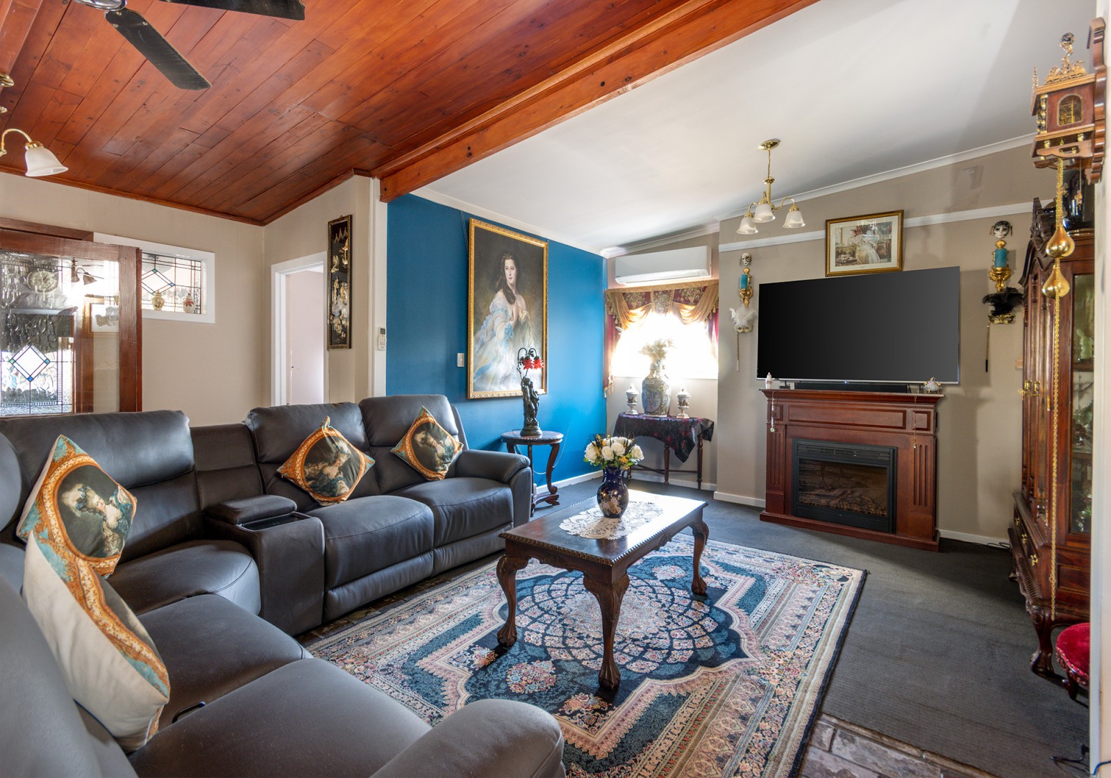 Soaring 14ft ceilings adorned with intricate ceiling roses create a breathtaking sense of space, exposed timber beams, leadlight windows & rich timber ceilings. The home boasts four spacious bedrooms with an optional fifth bedroom or study, making it ideal for growing families.
