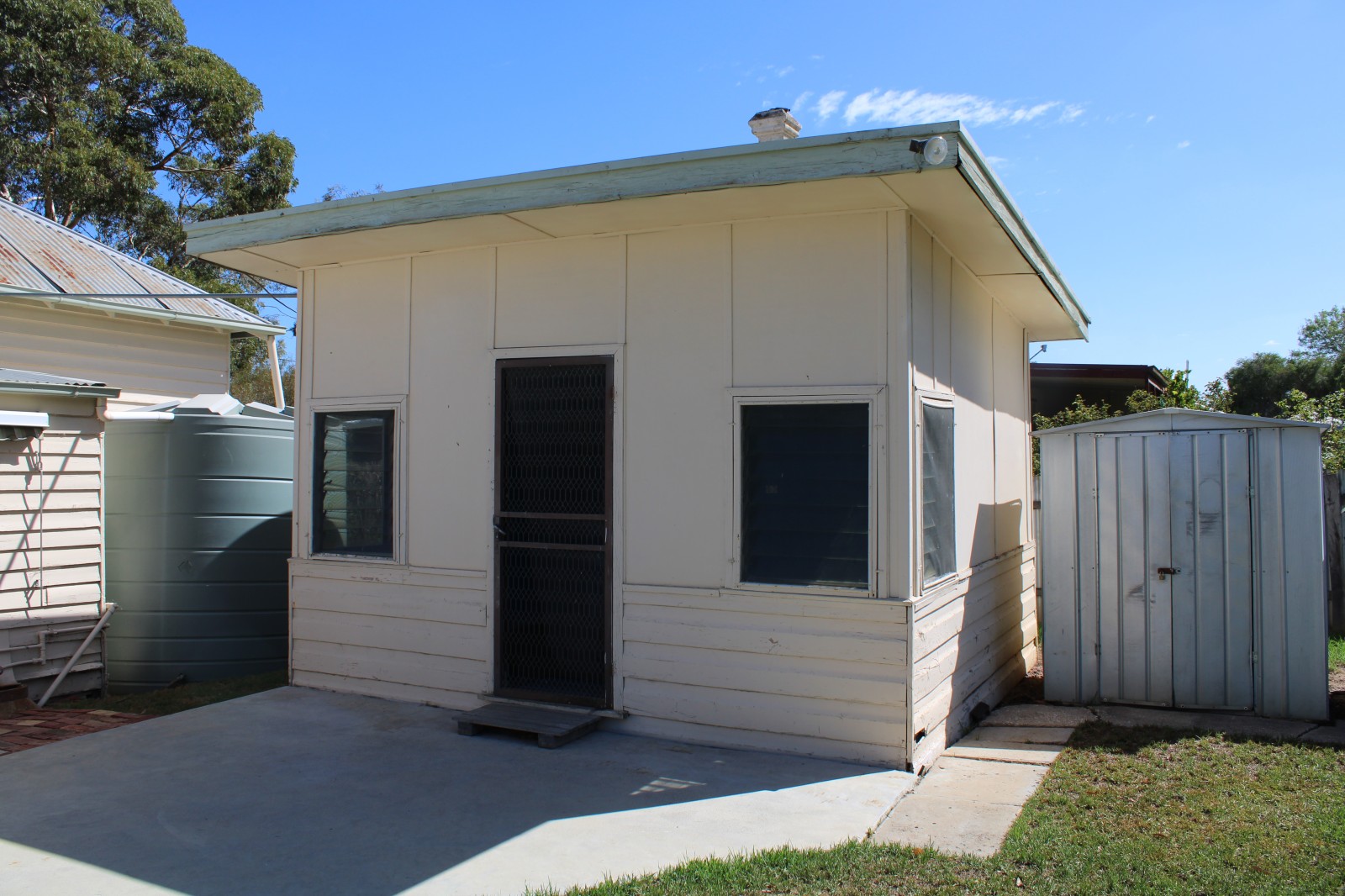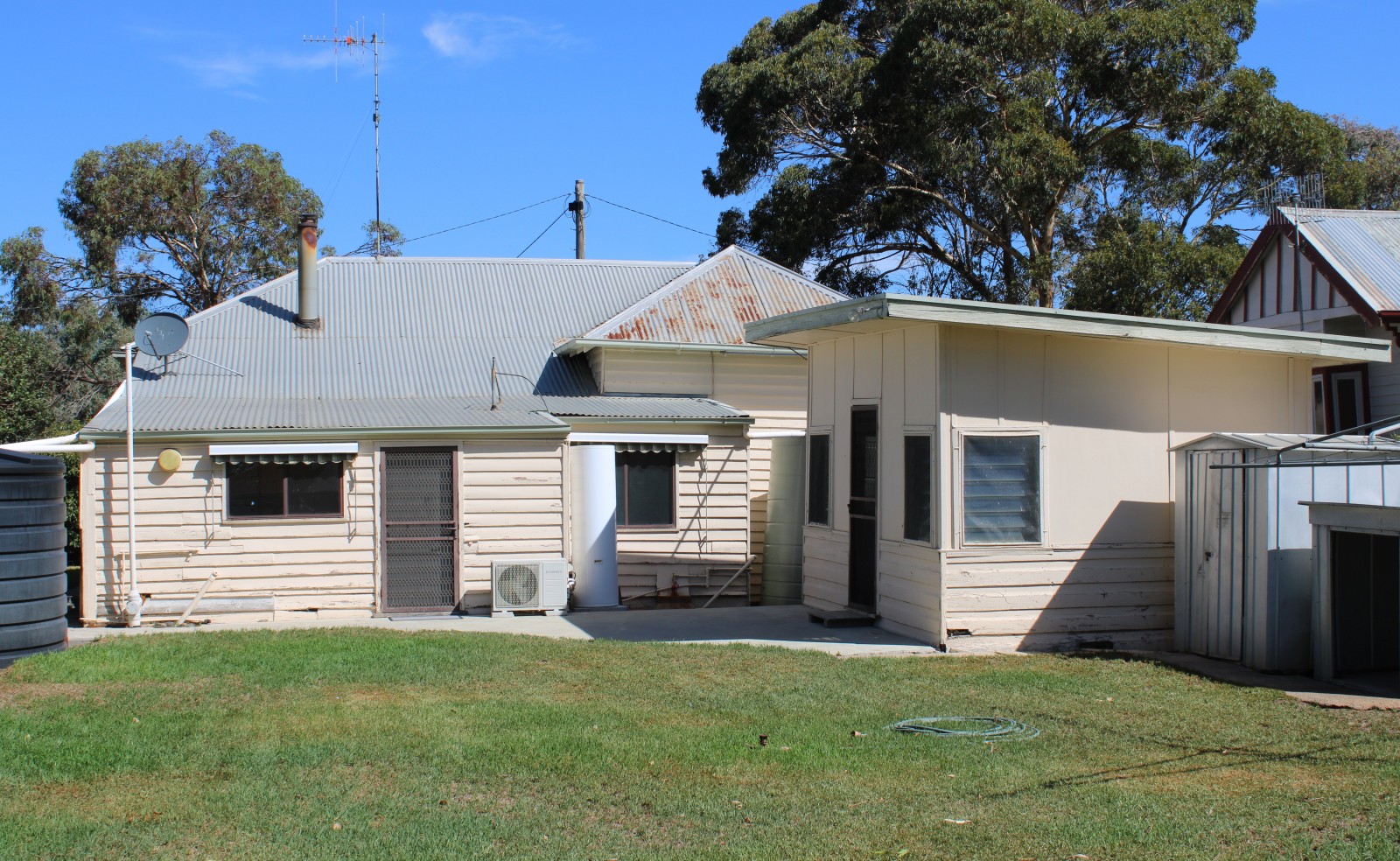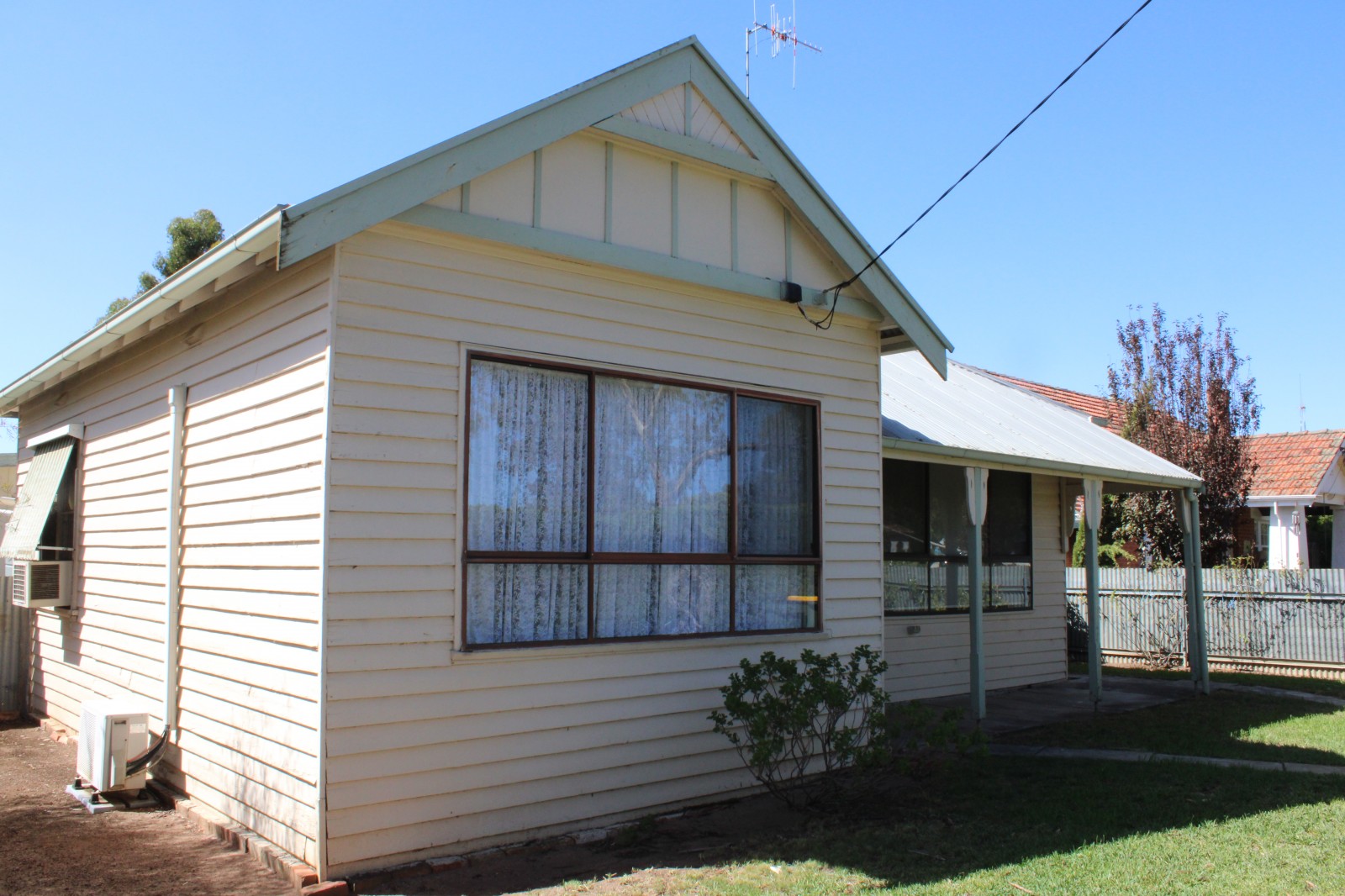 This weatherboard home is set on a large 1000 square metre block nestled behind a substantial hedge for privacy and seclusion plus rear lane access. Offering 2 spacious bedrooms with aluminium windows all round. A large lounge room with a combustion heater and a split system to keep comfortable all year round. A functional kitchen for preparing meals featuring a gas stove. A neat bathroom with a separate shower, bath and laundry.