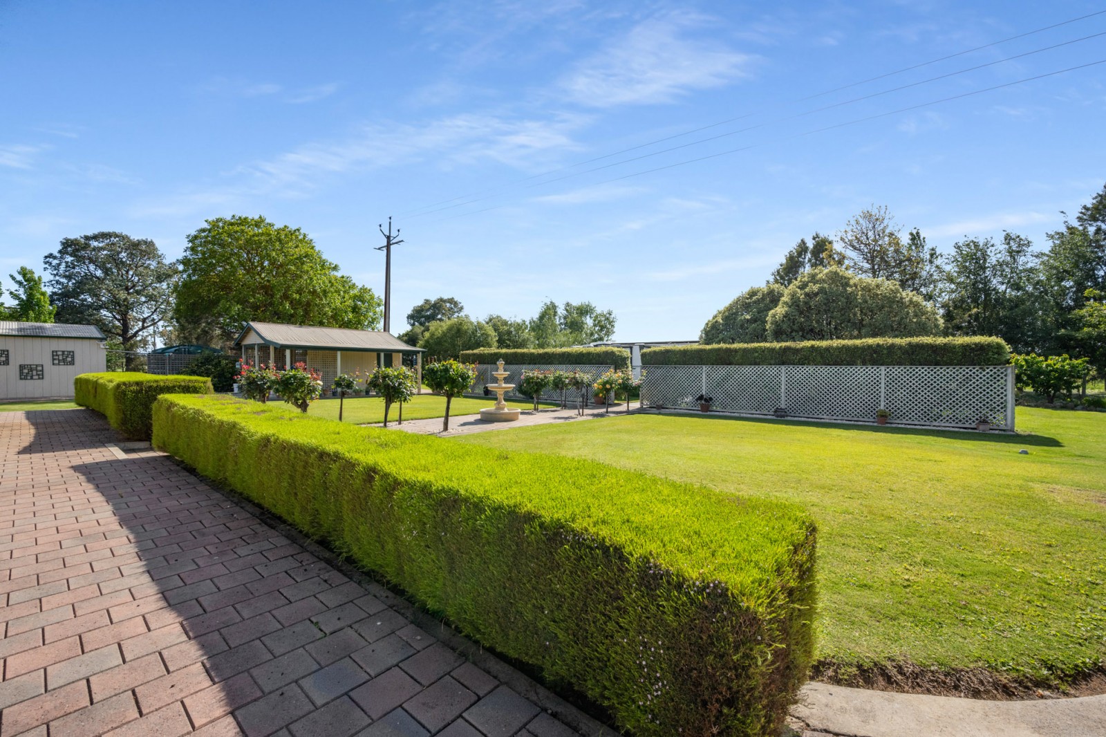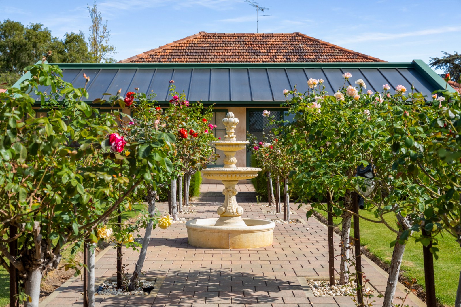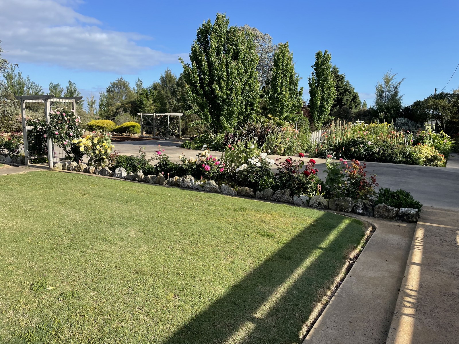 - Sweeping lawns, shady established trees, fruit trees, and vibrant garden beds offering year round colour with a vast variety of flowering roses, shrubs and climbers