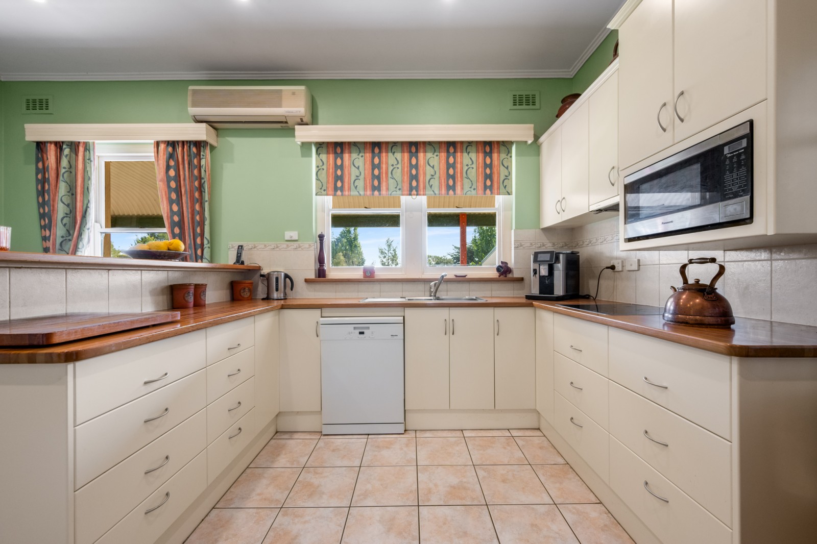 - Open-plan kitchen and casual dining area with in-wall oven, dishwasher, and ample storage. An adjoining formal dining area connects to the large yet cosy lounge with split system air conditioning and a slow combustion fireplace. All areas offering stunning garden views out the many large windows.