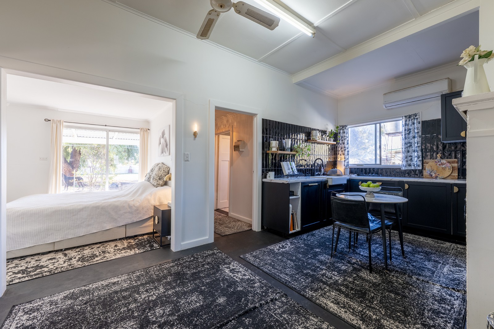 - Split system air conditioning in the main kitchen/living area