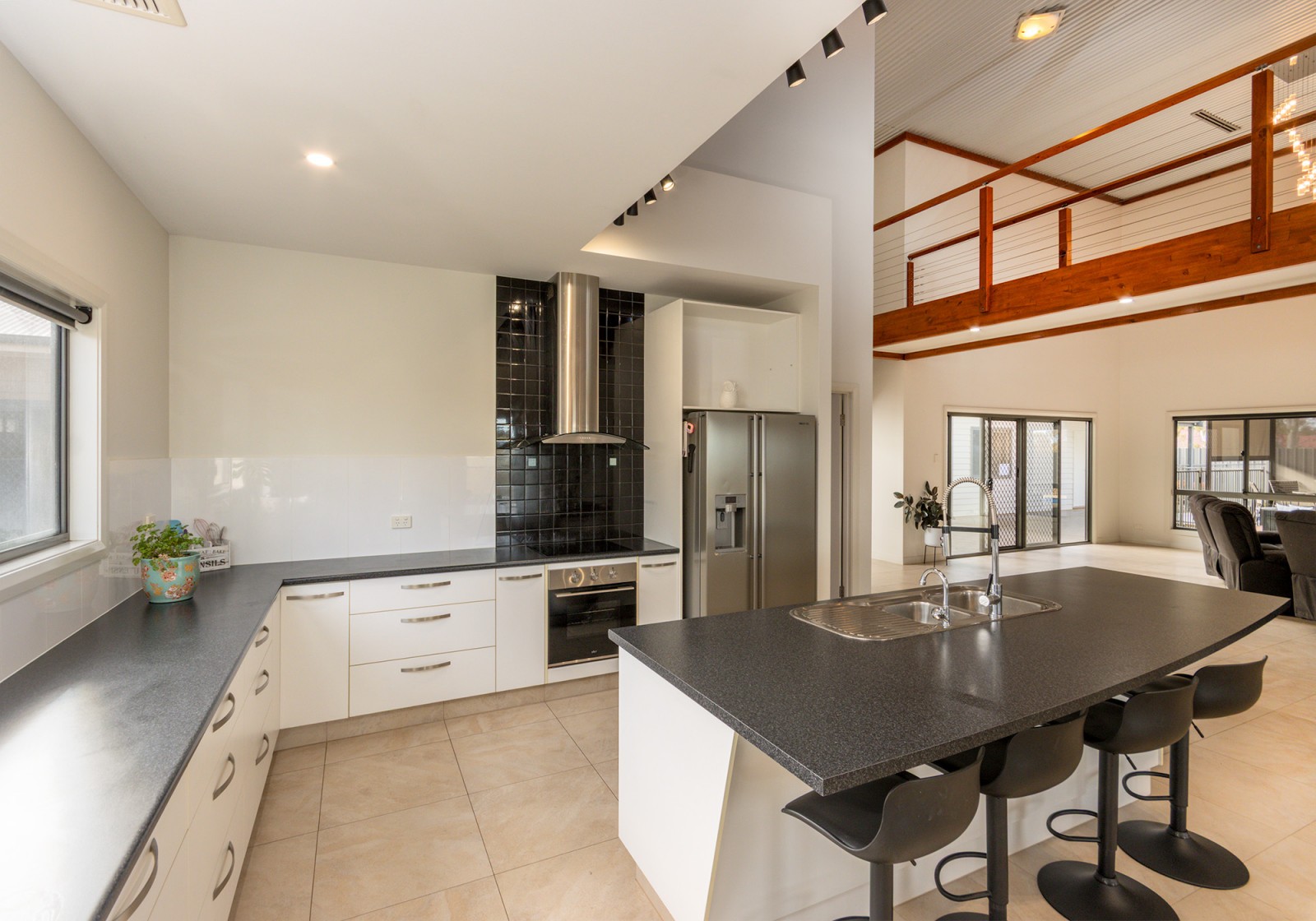 Nestled on a generous 1.67ha allotment just minutes from the heart of Moonta, this 2009 built masterpiece offers 7-bedrooms, 2 bathrooms and 4 toilets. A rare opportunity for growing families, lifestyle seekers, or investors looking for versatility and potential. The ground floor features an expansive open-plan living and dining area, ideal for large family gatherings or entertaining guests. A modern kitchen takes centre stage with quality electric appliances, glossy black tiled splashback, ample cupboard and bench space, and a large island bench complete with twin sink, dishwasher, storage and breakfast bar. A large walk-in pantry provides additional shelving and appliance space, while stylish tiling flows throughout the home. Year-round comfort is assured, with reverse cycle heating and cooling servicing the front of the home and evaporative cooling providing airflow to the rear. A combustion heater also adds warmth and ambience during the cooler months. Four spacious bedrooms with built-in robes, a separate cinema room perfect for movie nights, a dedicated study, and a large laundry with plenty of storage. The stylish family bathroom is nothing short of luxurious, with a walk-in waterfall shower, freestanding island bath, and double vanity with additional storage nearby. Polished timber stairs lead you to the private upstairs retreat, where the master suite is perfectly positioned to capture sweeping views. Enjoy a generous walk-in robe, private ensuite, and peaceful separation from the rest of the home. An additional upstairs bedroom or home office provides even more flexibility, along with access to the balcony overlooking the coastal landscape. Outside is where this property really shines for entertainers and families alike. A stunning undercover alfresco area comes complete with decking, built-in BBQ, bar and sink – all overlooking the fully fenced inground salt-chlorinated pool surrounded by established palm trees and paved grounds, creating your very own resort-style escape. A fourth toilet nearby adds extra convenience for poolside entertaining.