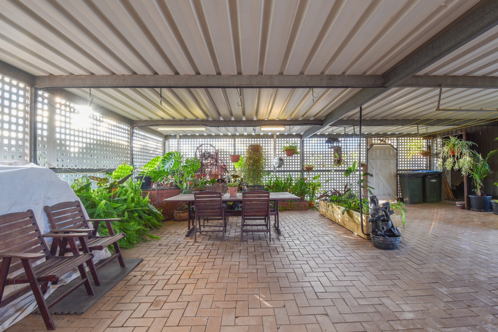 Stepping outside, a generous undercover patio provides the perfect setting for entertaining family and friends, with the potential to bring the former built-in BBQ back to life. Multiple sheds are positioned throughout the property for garden equipment, tools, and storage. The established gardens include a variety of fruit trees, an irrigated veggie patch, and landscaped surrounds.