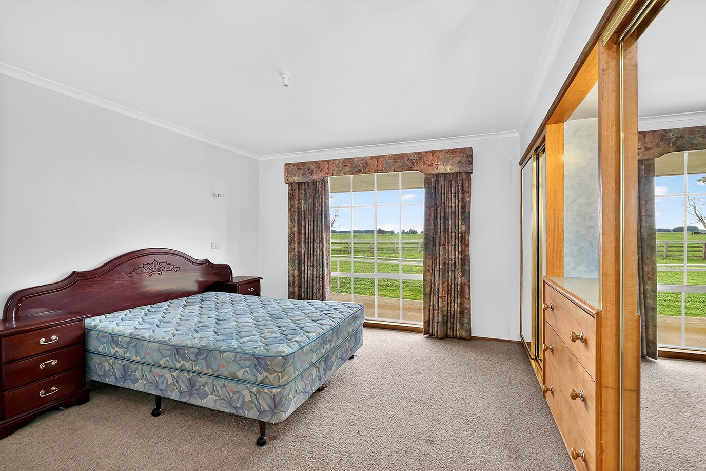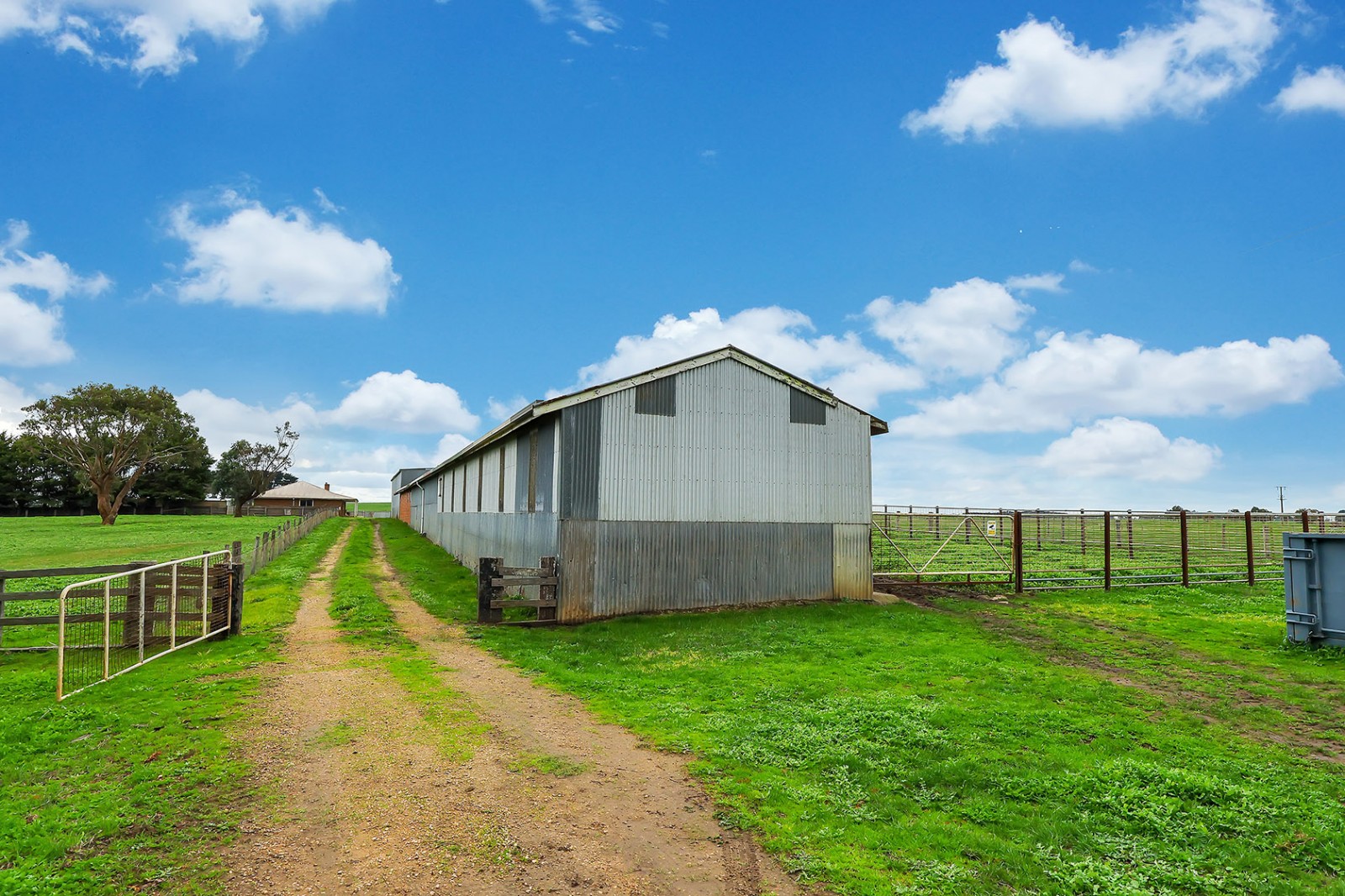 Large 4 bedroom brick home with dual garage, freshwater storage tank, multiple horse stables, 2 machinery sheds, further sundry shedding , timber stock and round yards, Bore with Windmill, 2 storage tanks to stock water troughs, fenced laneway servicing variety of paddocks.