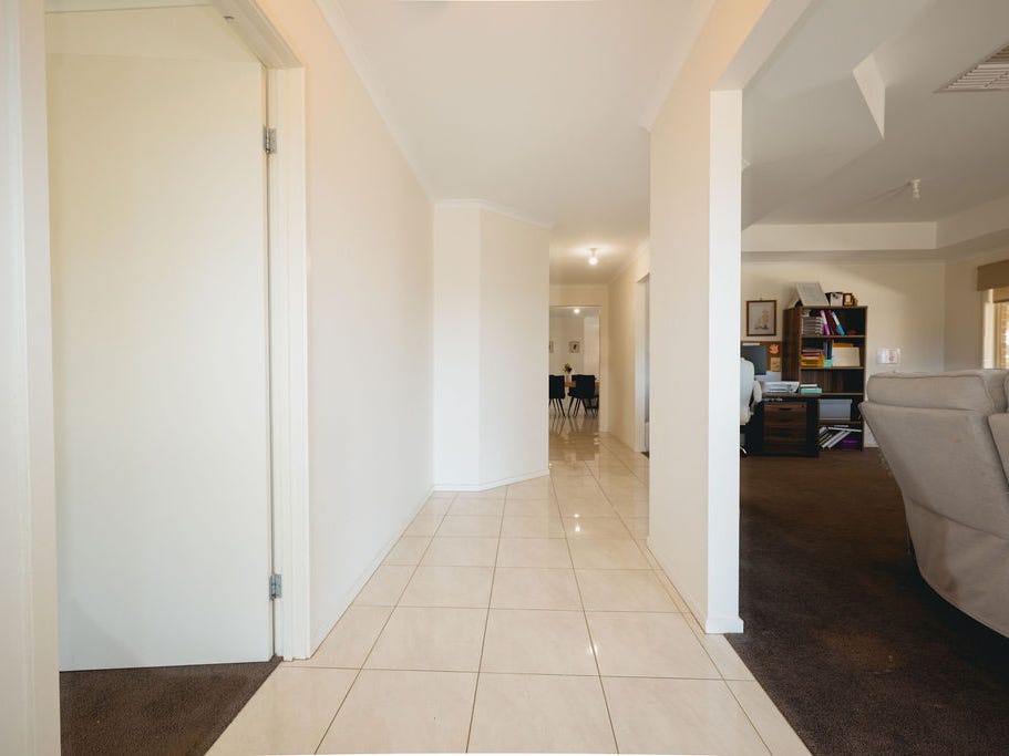 Modern brick veneer with elevated views of tree-tops. Wide tiled hallway and featured vaulted ceiling from lounge room.