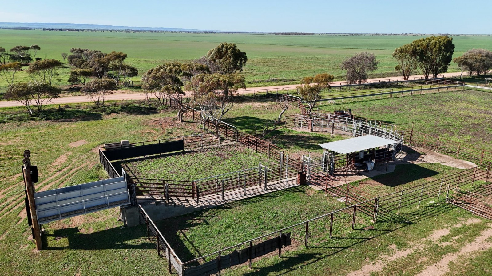 - Steel cattle yards with two deck cattle loading ramp