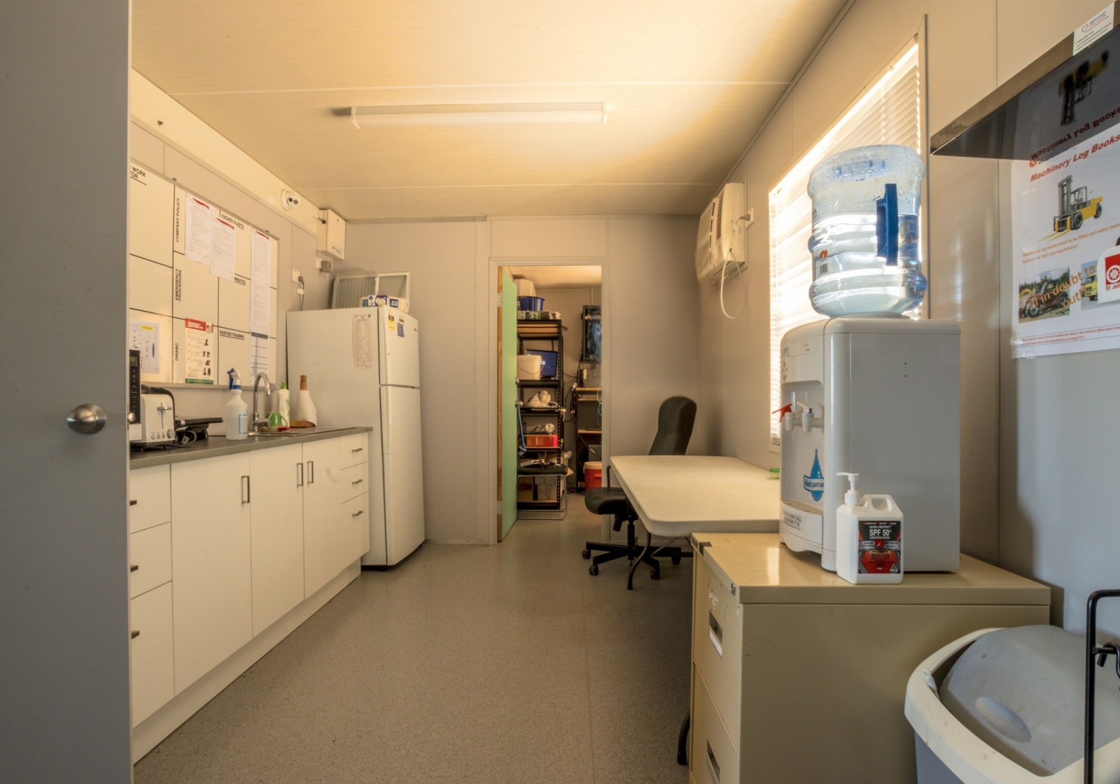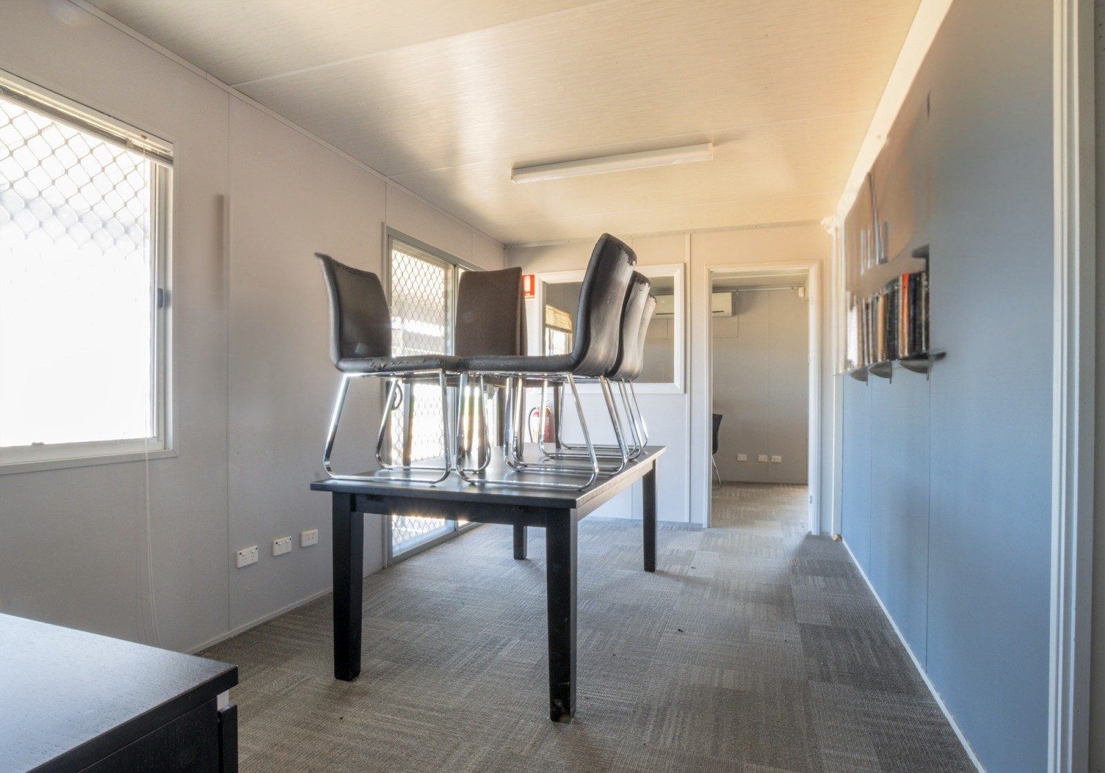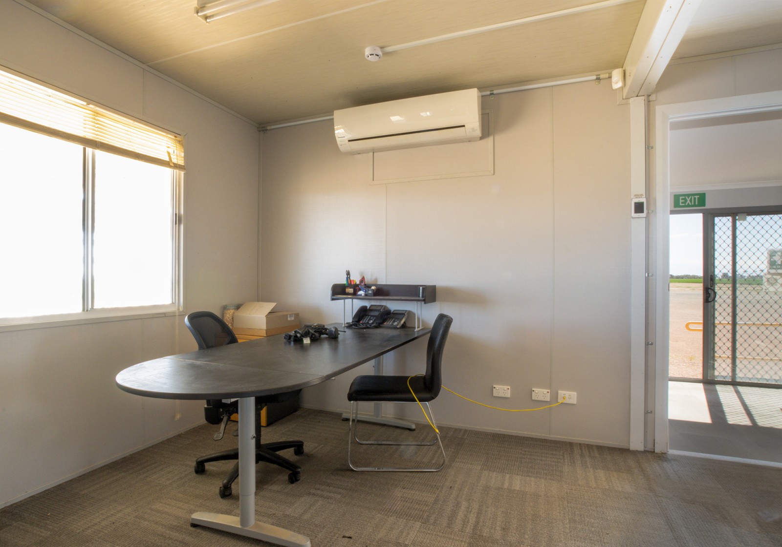 -  Office building including reception, four offices, ablution facilities, lunchroom, and telecommunications room