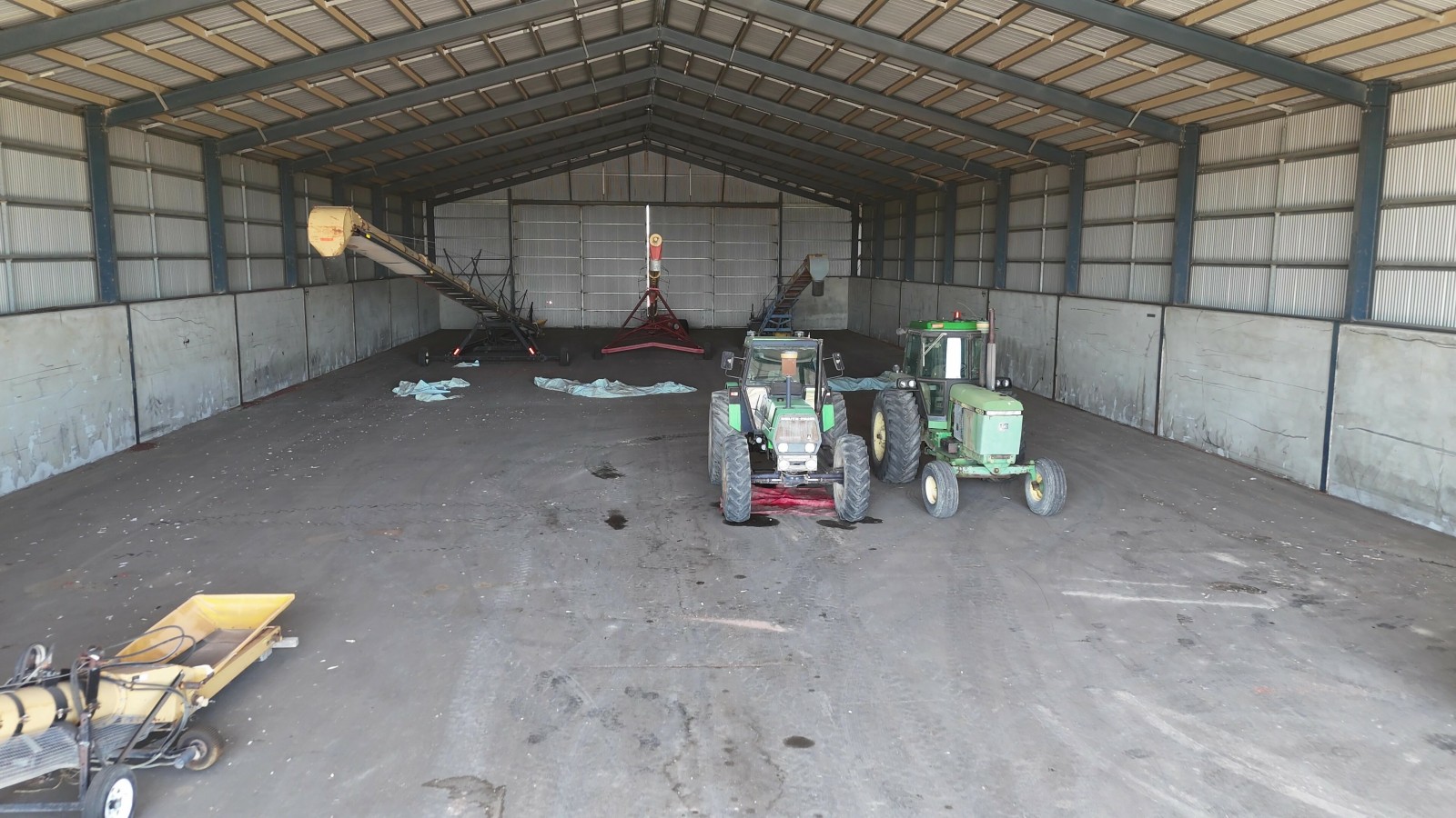 -  Three 60 m x 25 m* hard floor grain storage sheds (two drive-through)