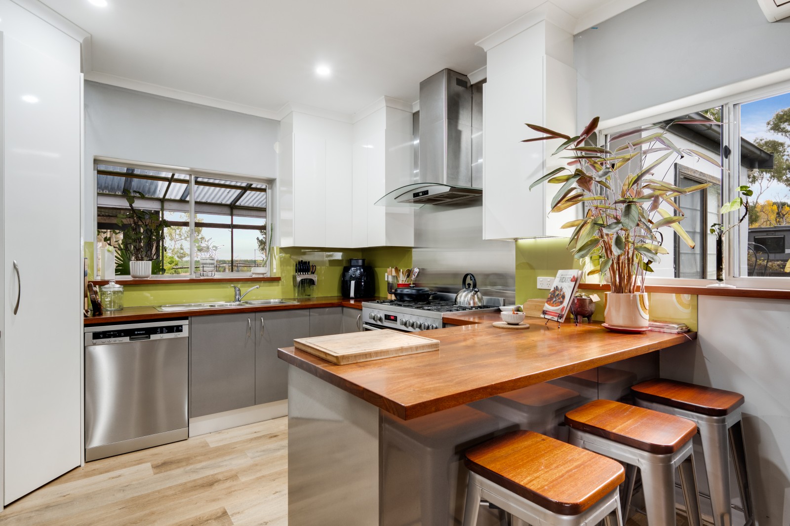 - Renovated open plan kitchen, living and dining with views over the wetland, and seamless transition to the decked entertaining area. The kitchen offers dishwasher, beautiful Jarrah timber benchtops and gas cooking.