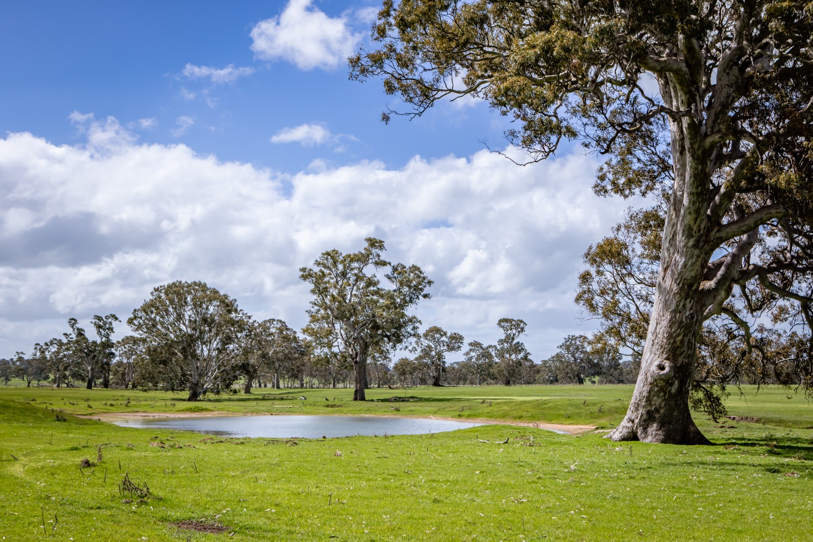 Featuring medium loam soils studded with large red gums, the property offers productivity and shelter.