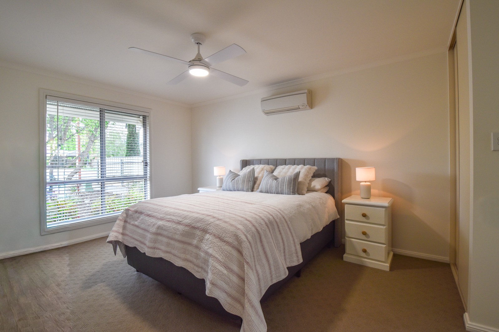 Outdoors, the paved pergola area is perfect for entertaining or relaxing, surrounded by a beautifully landscaped, easy-care garden that bursts with colour and texture. The automatic irrigation system ensures it stays picture-perfect all year round.
