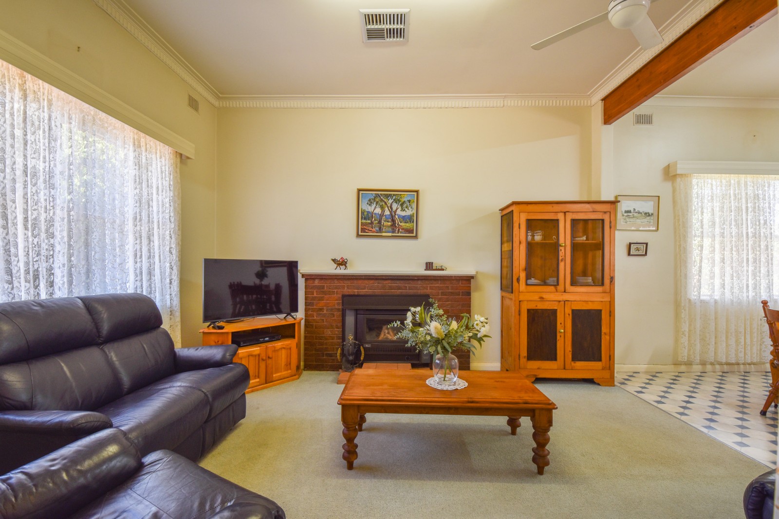 The open-plan dining and lounge area offers year-round comfort with a split-system air conditioner and slow-combustion heater, complemented by a mix of easy-care lino and soft carpet flooring for that warm, homely feel. A generous study off the entryway could easily double as a fourth bedroom or hobby room. All three main bedrooms feature built-in robes and carpeted floors for added comfort.