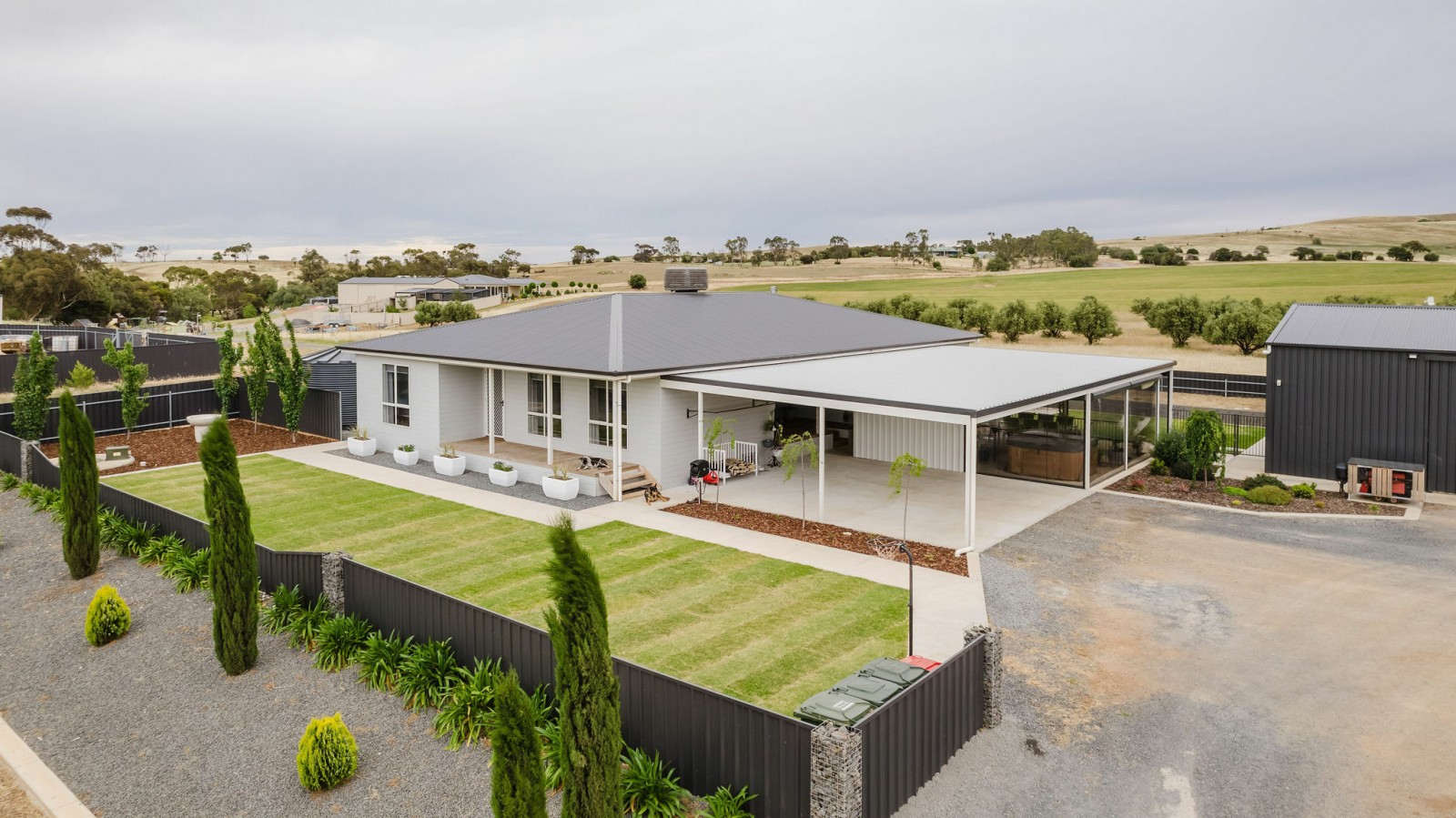 Set on approx. 3.5 acres* of land, this beautifully presented family home offers the perfect balance of space, comfort and rural lifestyle living. The home features 4 generous bedrooms, all with built-in robes and ceiling fans, plus additional study or home office. Stylish 3-way main bathroom plus ensuite, laundry with built-in storage. Spacious front lounge room with rural views, quality fixtures and fittings throughout. Modern kitchen featuring overhead cupboards, walk-in pantry, island bench and quality appliances. Open plan living area with ducted evaporative air conditioning, split system and combustion heater.