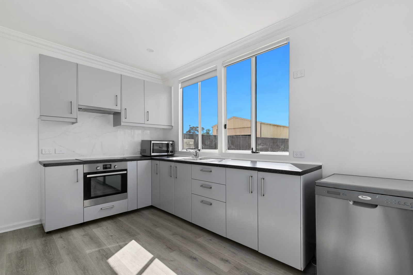 The heart of the home, a modern kitchen, has been thoughtfully designed with an electric oven and cooktop, dishwasher, and laundry provisions, blending practicality with effortless style. And when it’s time to unwind, the luxurious bathroom offers a sanctuary of calm — a deep bathtub, separate shower, double vanity, and floor-to-ceiling tiles that feel both indulgent and timeless.