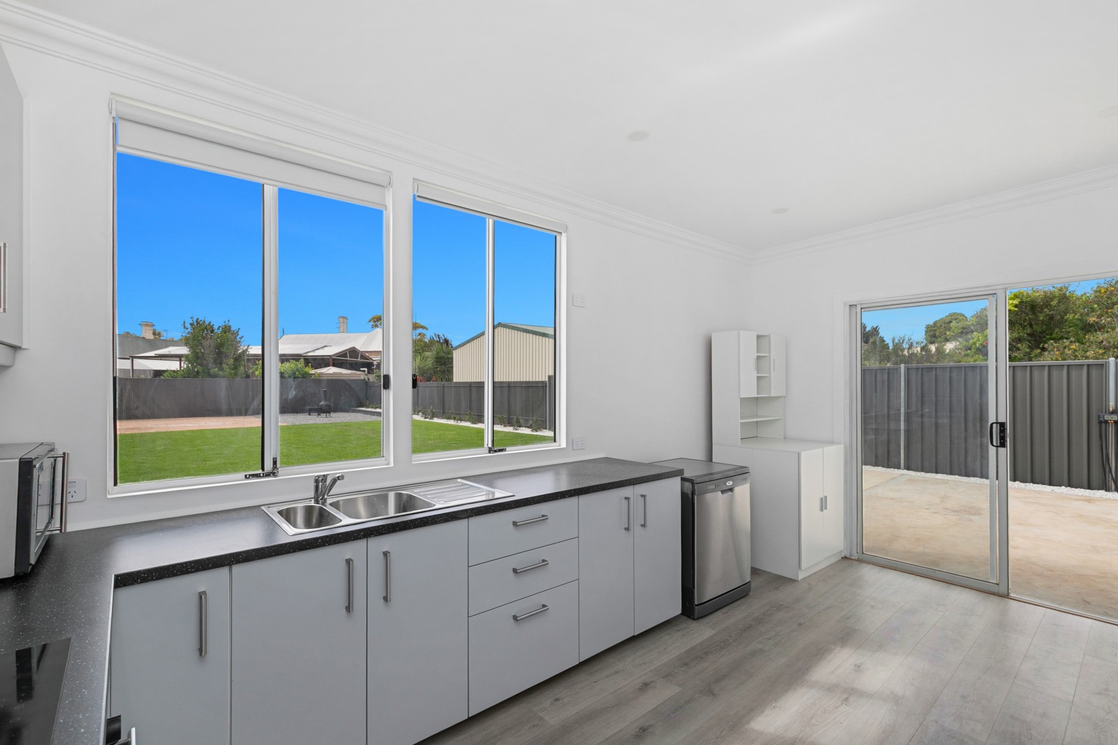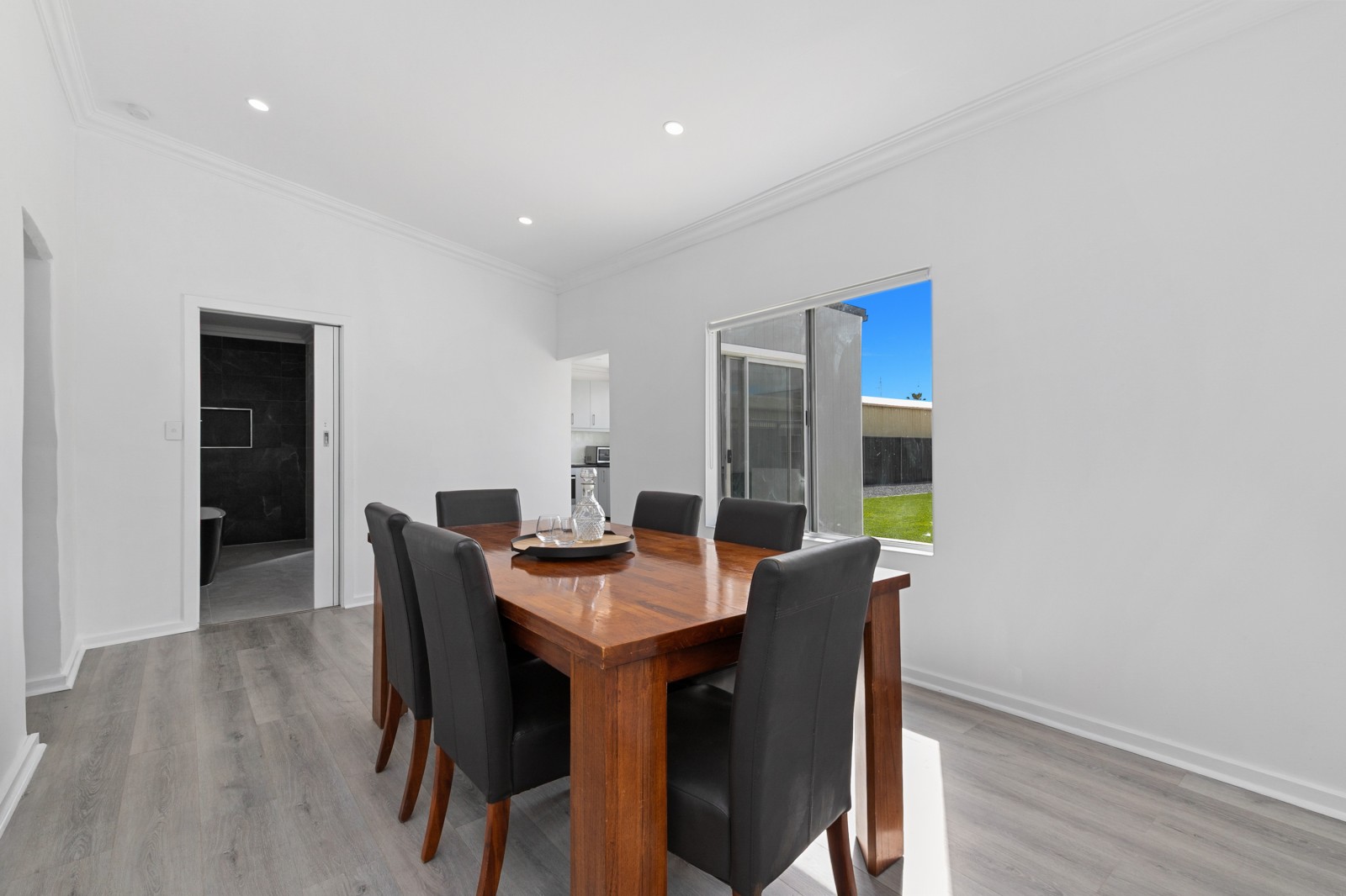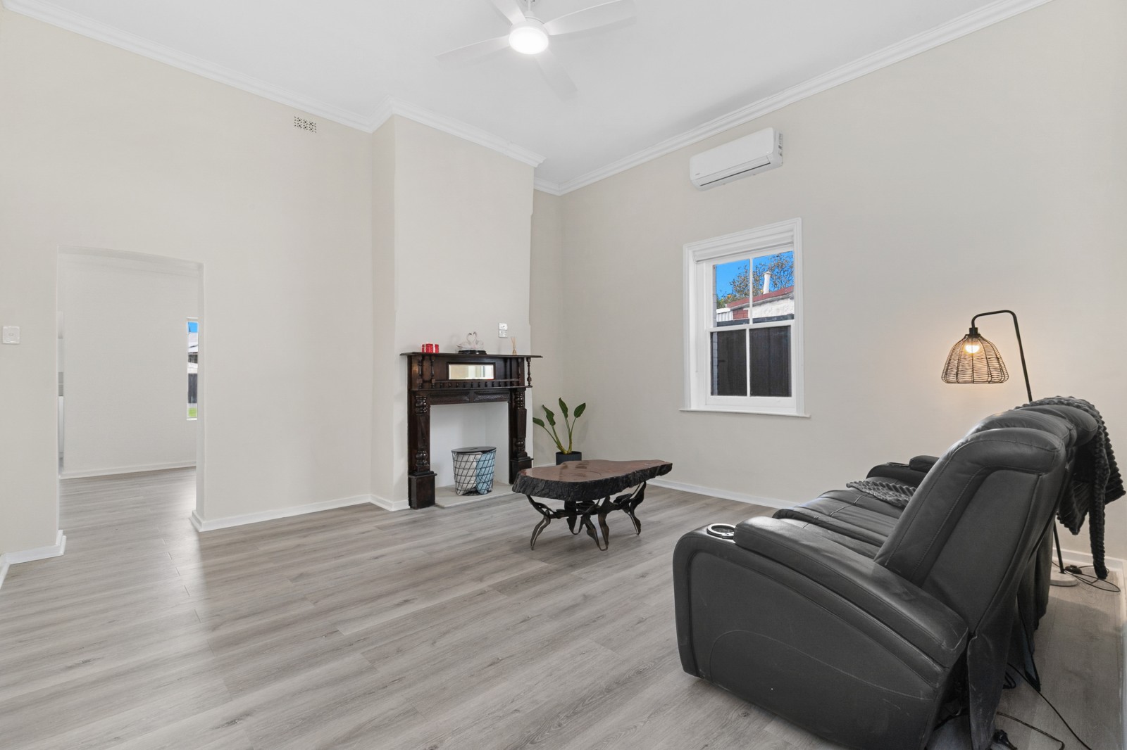 At the centre of the home lies a spacious lounge, filled with natural light and character. A mantlepiece, new flooring, split system air conditioner and ceiling fan create the perfect haven for family nights or quiet relaxation. The stylish dining room flows seamlessly from here — a space to share stories, laughter, and late-night conversations.