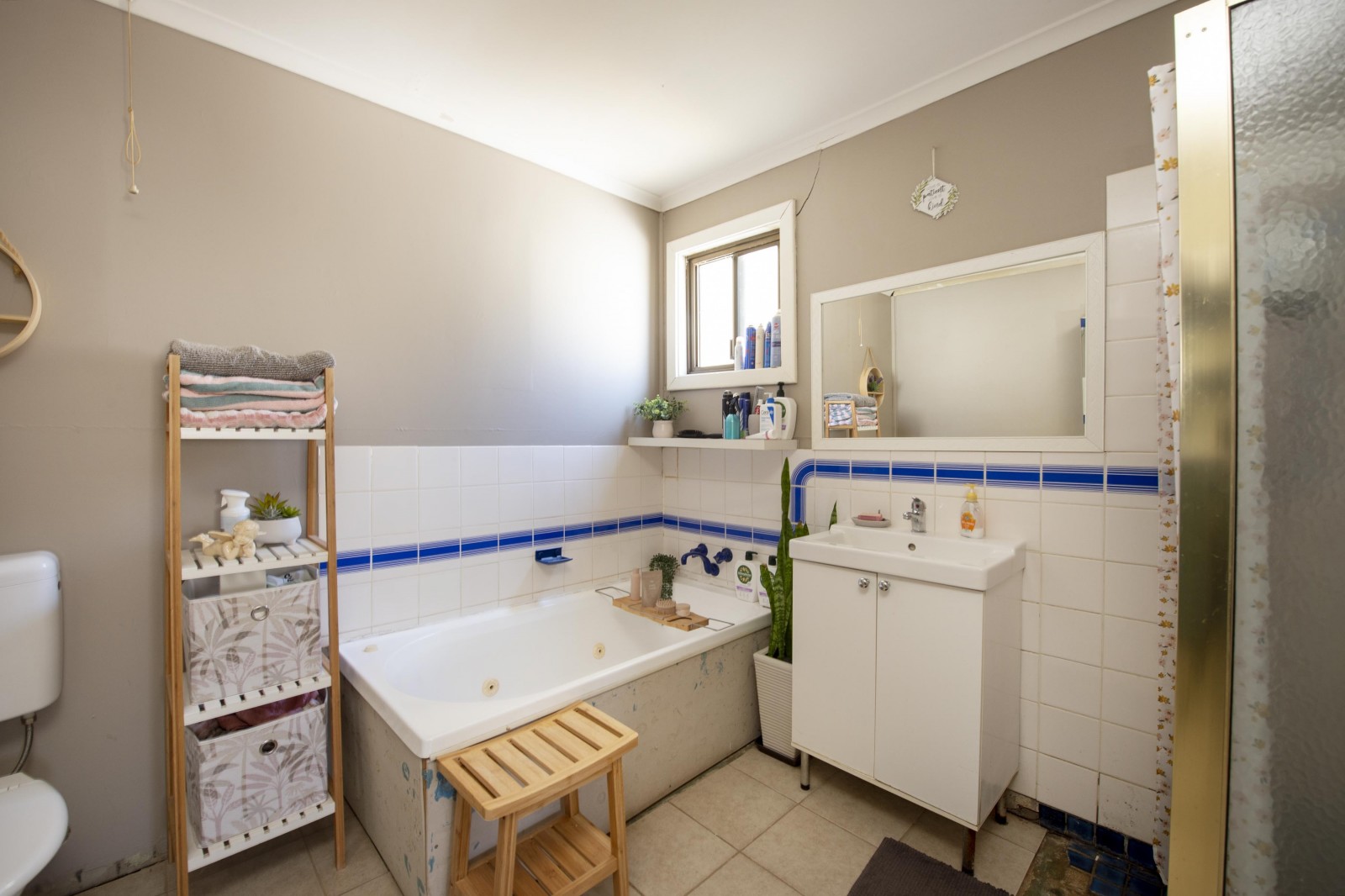 - Bathroom with separate shower and bath