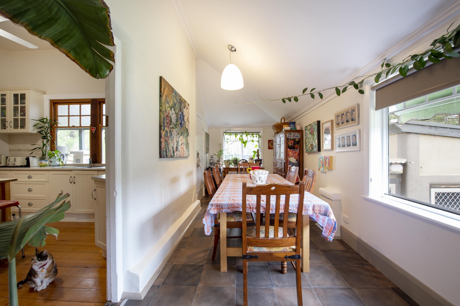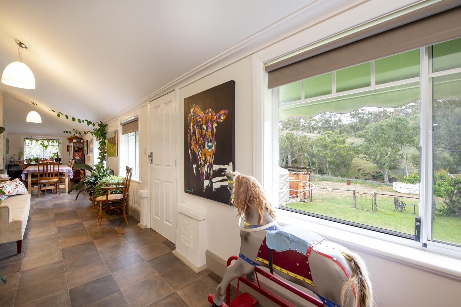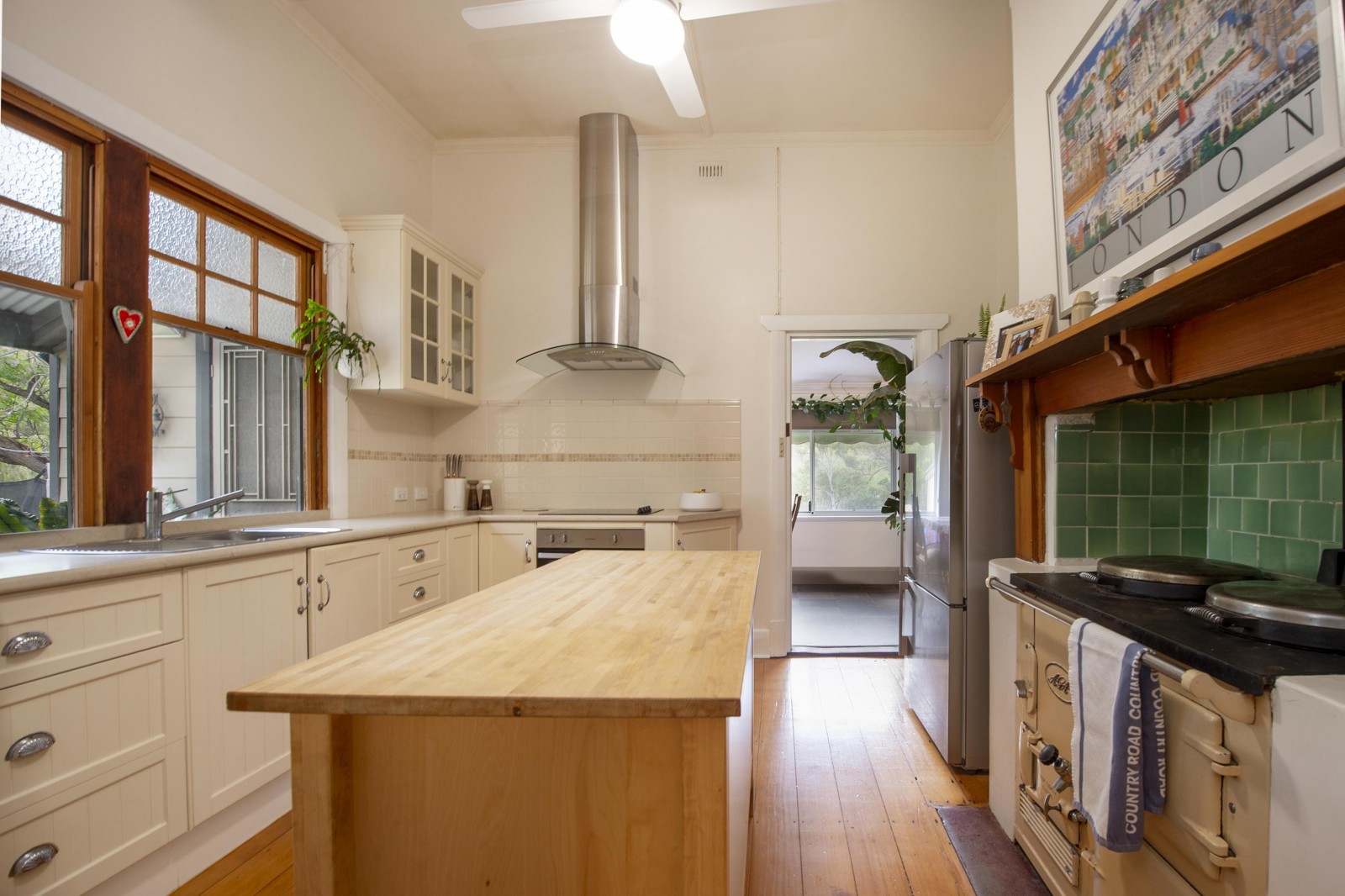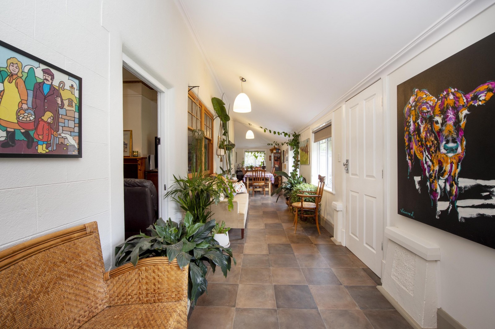 Beautifully positioned amongst gums and abundant birdlife, the residence blends original charm with modern comfort. High 11-foot ceilings, leadlight windows and a wide hallway anchor the home’s character, while thoughtful updates make everyday living easy. The home is now presented as four full bedrooms with the option of a fifth, ideal for families or guest accommodation. A recently upgraded bathroom, fully enclosed verandah, generous open office and a light-filled sunroom provide flexible living spaces. The large lounge offers combustion heating, ceiling fans and split-system air conditioning, while the country kitchen features an old Aga stove and a walk-in pantry.