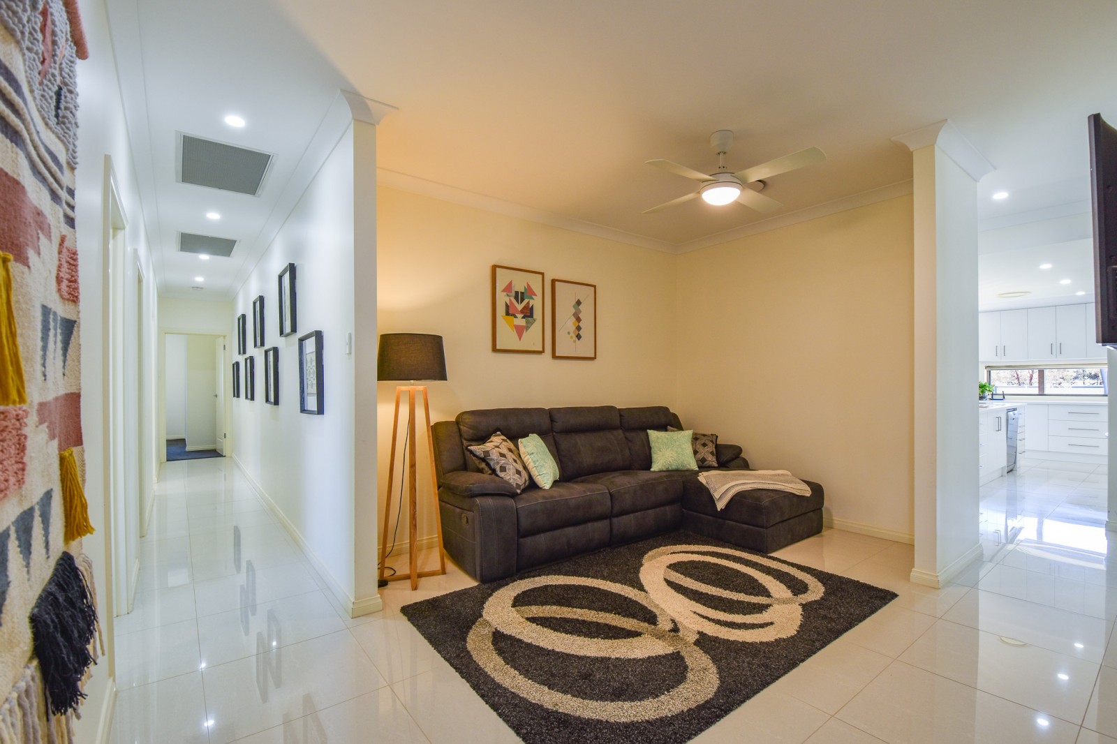- Easy-care floor tiles and ample power points throughout