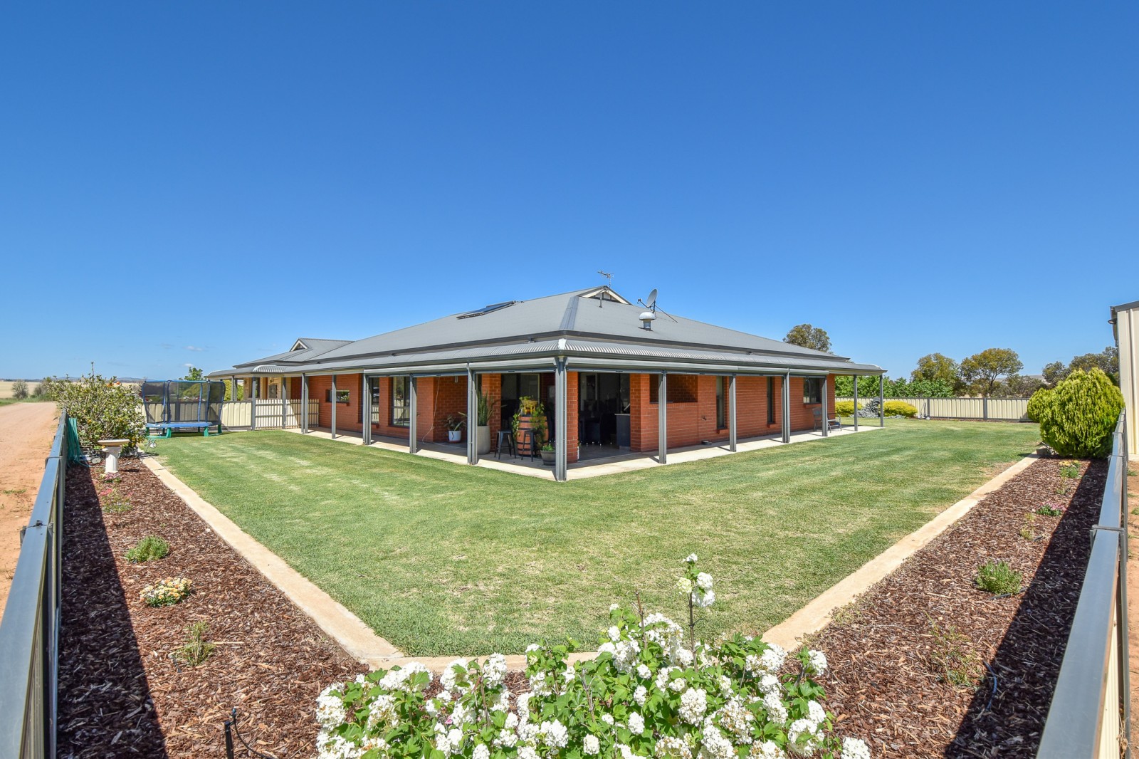 Sustainable living is catered for with a 32-panel (10kw*) solar system, large rainwater tank supplying the home, and mains water also connected.