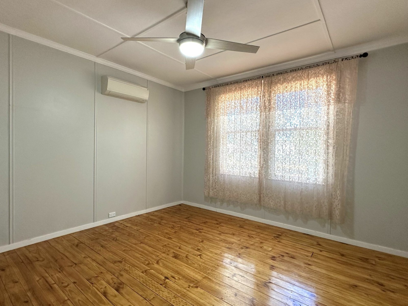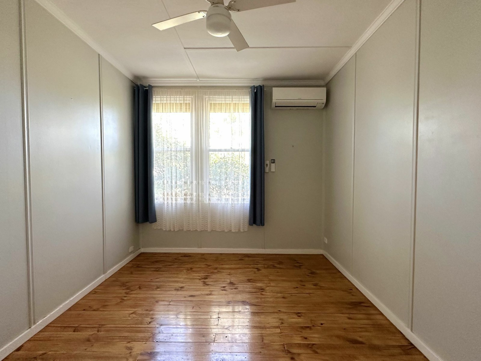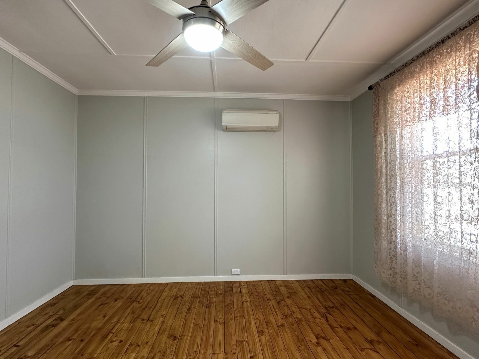 Accommodation is generous, with three well-sized bedrooms all featuring pine floors, ceiling fans and split system air conditioning. The modern bathroom impresses with floor-to-ceiling white tiles, a walk-in shower, sleek white vanity and toilet, while the laundry offers excellent storage and a stainless steel wash trough.