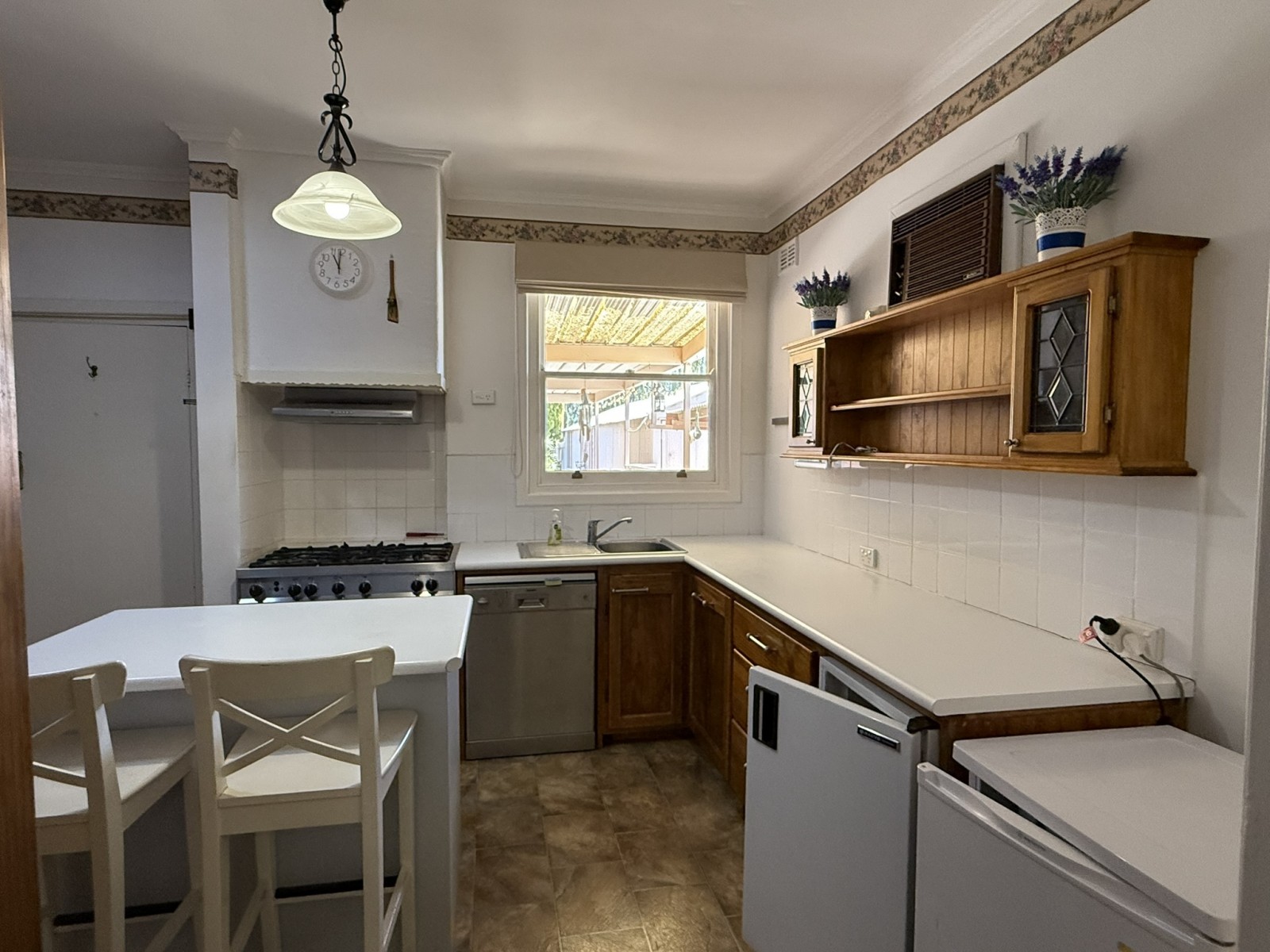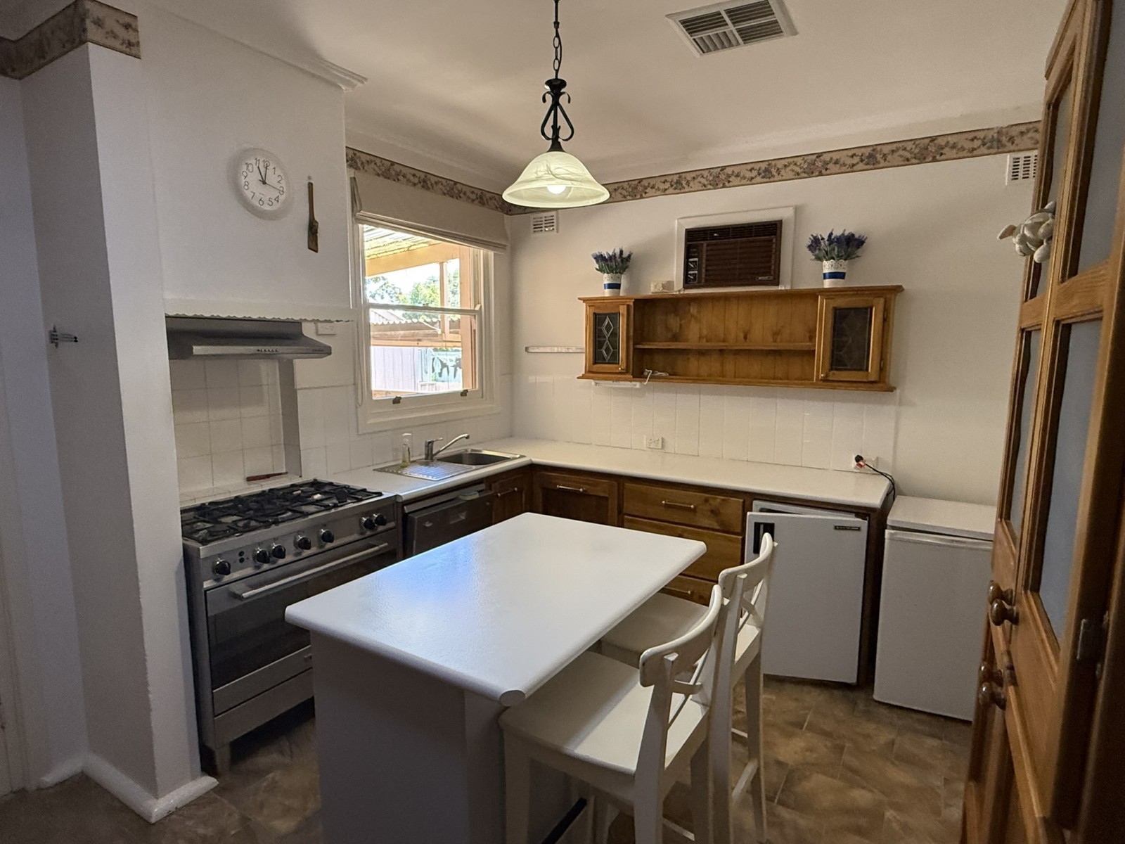 The upgraded kitchen is both functional and impressive, offering a 900mm oven, five-burner gas cooktop, dishwasher, island bench, and extensive custom timber dressers and cabinetry. Even better, the fridge and freezer are included, making this a genuine walk-in opportunity.