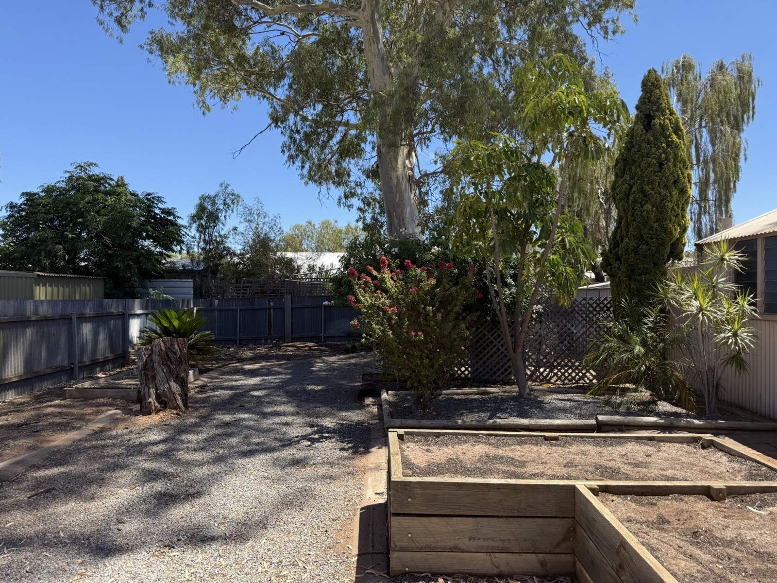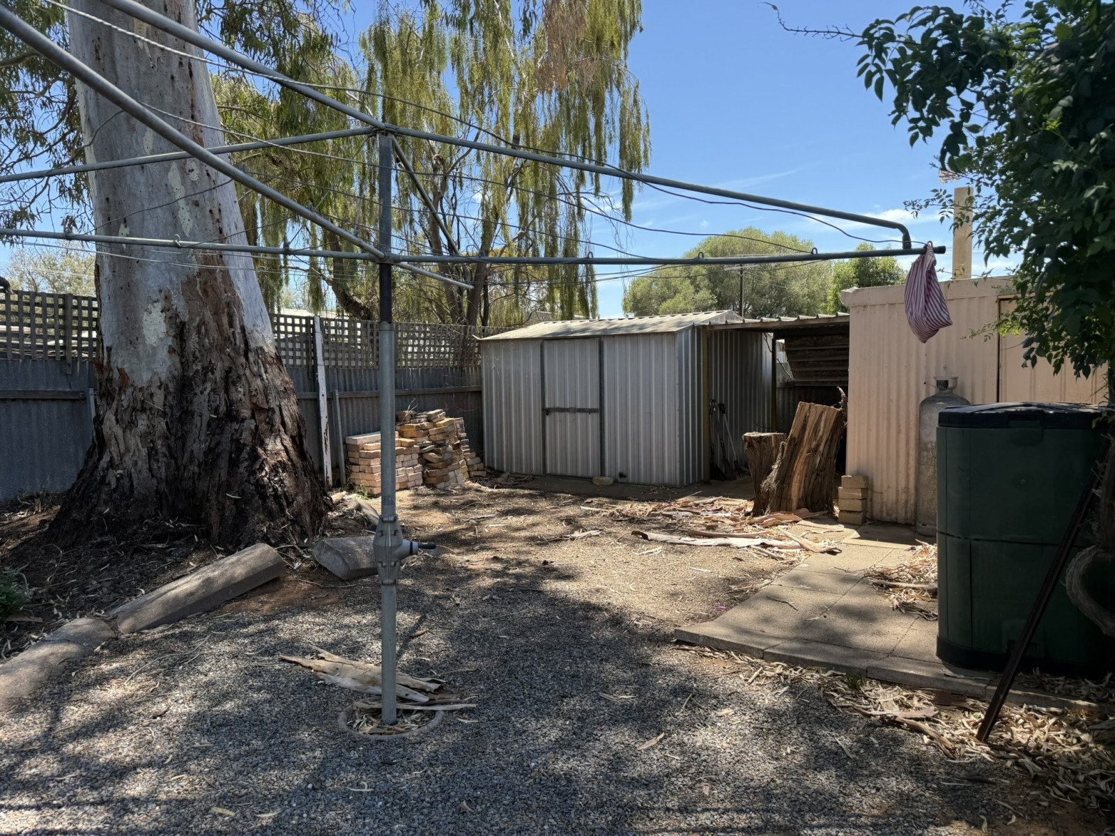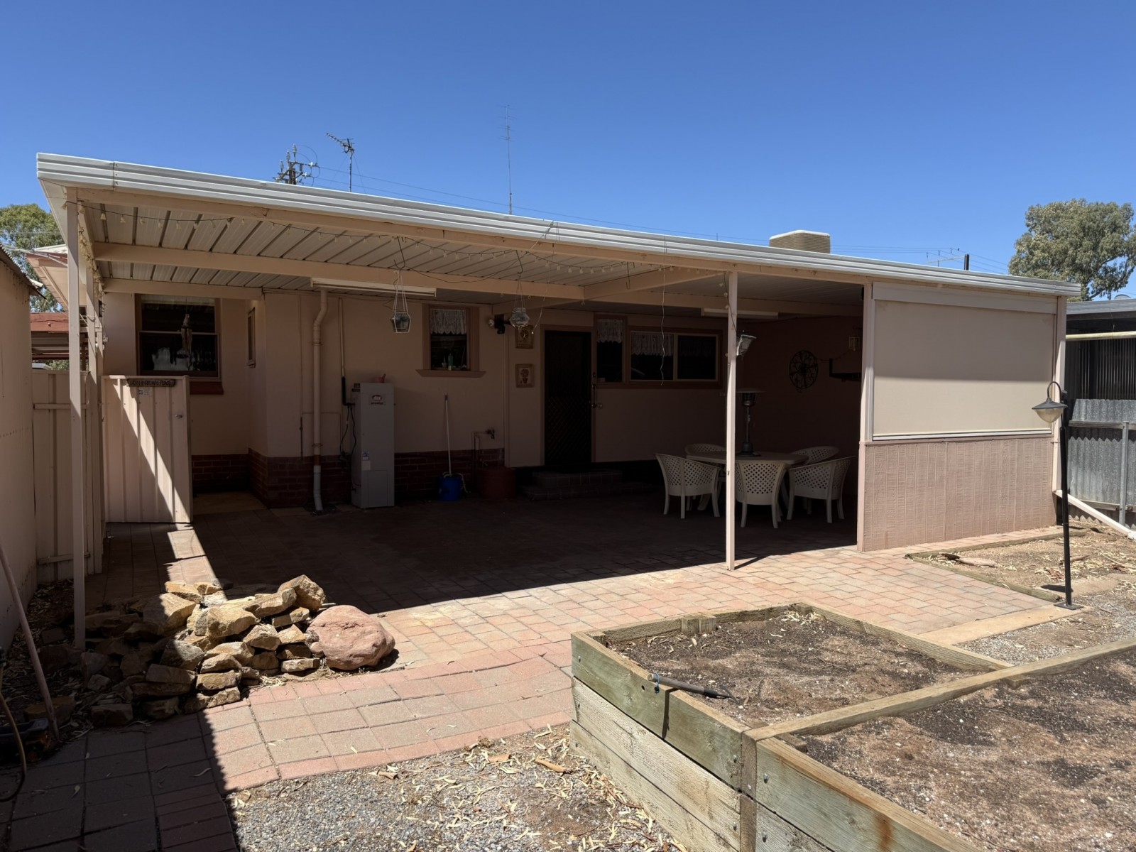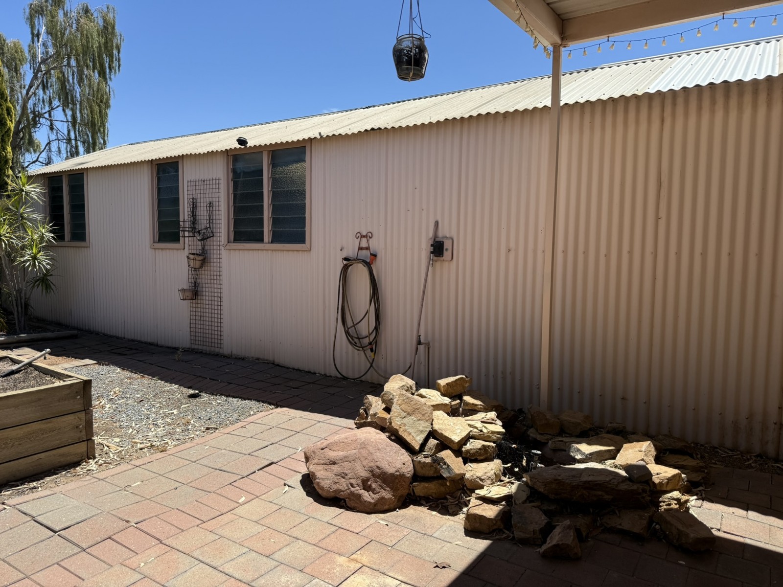 Outdoors, the home continues to impress with a large paved undercover entertaining area, complete with blinds for privacy and wind protection—ideal for family gatherings year-round. The steel-framed shed features a concrete floor, power, workbench, and a potter’s kiln, offering unique versatility for hobbies or home business use.