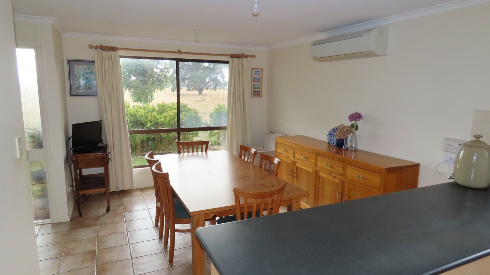 The timber framed 3 Bedroom dwelling features open kitchen dining area with Electric oven, walk in pantry, reverse cycle air conditioning this opens to the bright lounge area with views over the front paddocks and onto the rear verandah, it has a slow combustion heater for cosy warmth, the bathroom is well appointed with a bath and shower and there is a separate toilet. Two of the bedrooms feature built in robes.Ample rainwater is available to the house and the attractive gardens are watered from the bore.