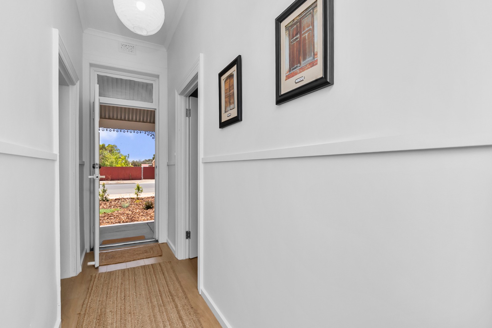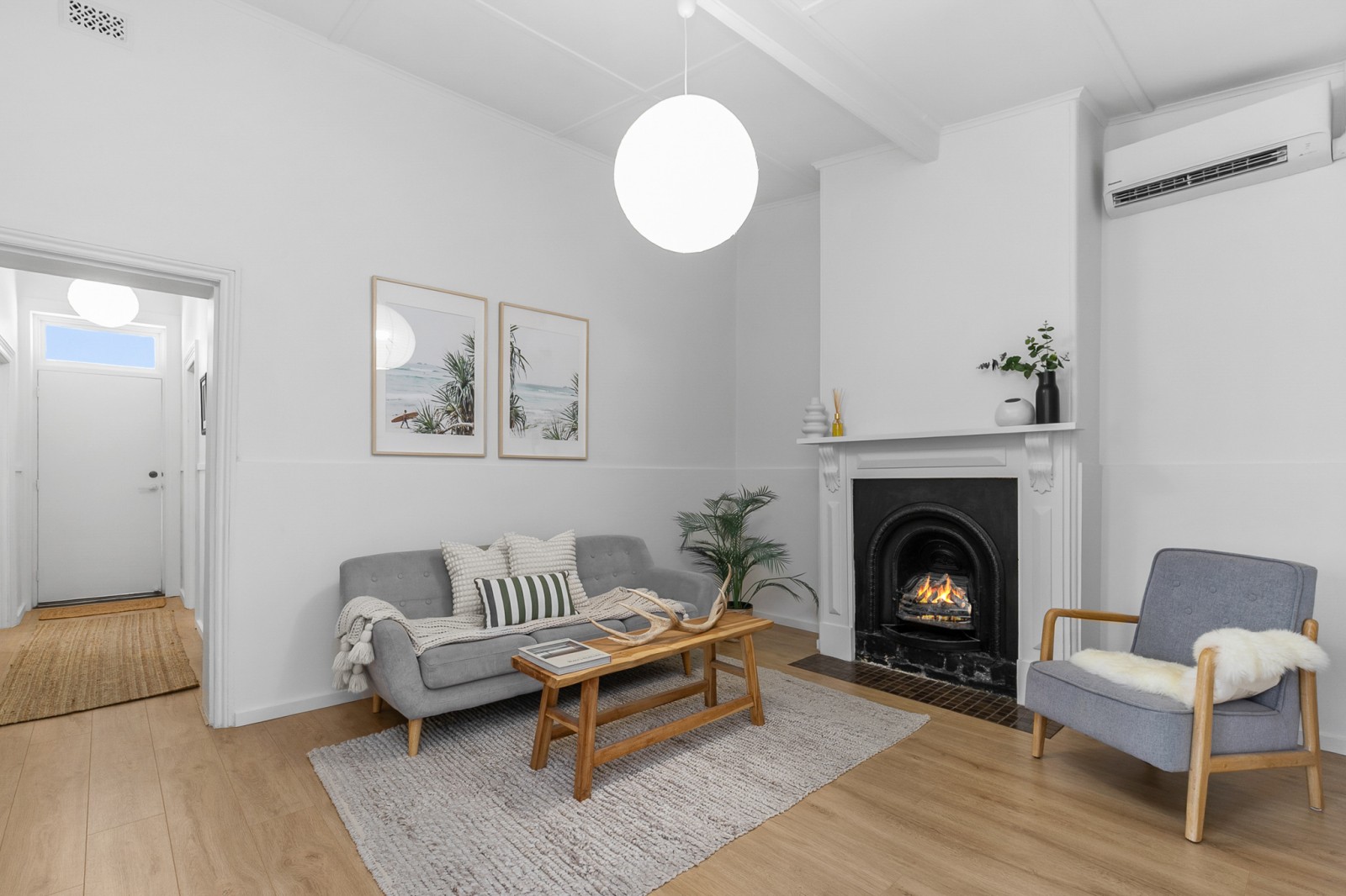 Central to the cottage is the living space with original fireplace, oak style laminate boards and for year-round comfort, a split system air-conditioning unit with capacity for 5kws of cooling and 6kws of heating. Completing the space is feature pendant lighting and electrical/TV points for the all-important wall hung television unit. Adding to the warmth of the cottage is three good sized bedrooms, all with their own unique personality, one with an original fireplace, one with feature bronze olive wall paneling and another finished with a hint of sage. Additional features include: a new roof, NBN, new insulation, freshly landscaped front and rear yard, sensor lights, rainwater tanks, downlights to kitchen/bathroom/laundry, feature pendant lights, electric hot water system, oak laminate boards to living, hall and bedrooms, travertine look tiles to wet areas and kitchen.