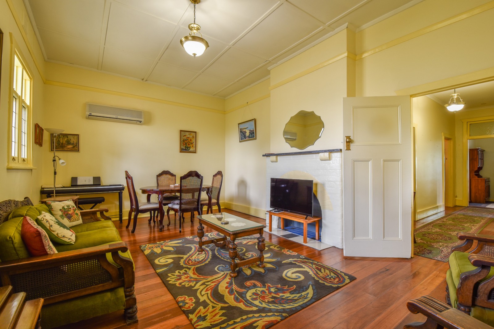 Inside, timeless features shine throughout the home, including stained glass windows, polished hardwood floors and an original fireplace that anchors the spacious lounge room, a comfortable space to unwind and entertain. A wide hallway leads to large, well-proportioned bedrooms, while the newly-rebuilt bathroom features wall tiles, shower and vanity, with a separate toilet for added convenience.