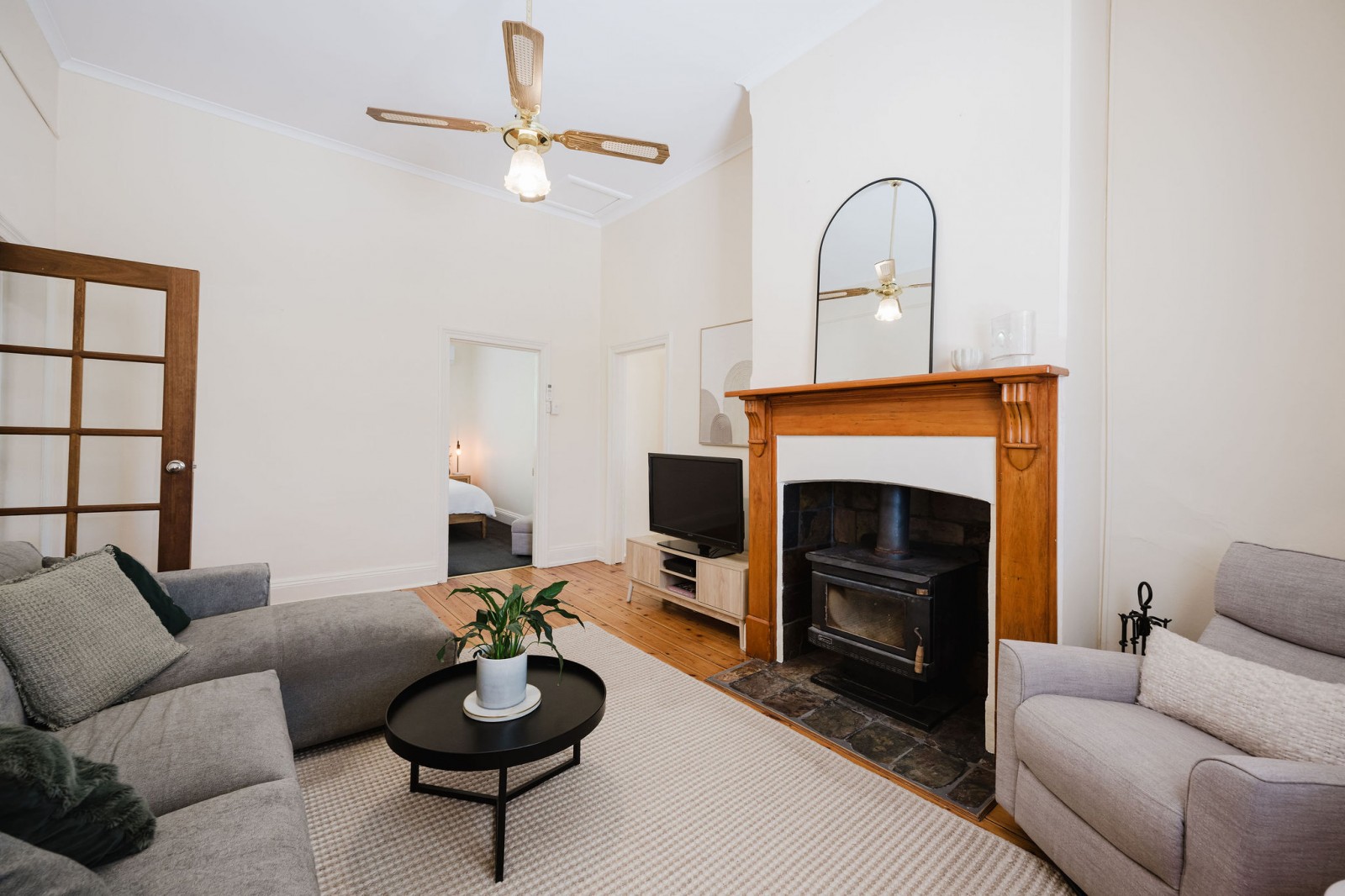 Rich in charm and beautifully updated, this character stone cottage showcases a classic bullnosed verandah with wrought-iron lacework and slate flooring. Inside, a central hallway with Baltic pine floors and lofty ceilings sets the tone for the home’s timeless appeal. The home offers four generous bedrooms, all with built-in robes, and reverse-cycle split-system air conditioning to three bedrooms. The comfortable lounge features a combustion heater and split-system air conditioning, ensuring year-round comfort. At the heart of the home is a stunning modern kitchen with island bench, dishwasher, electric cooktop and oven, complemented by excellent cabinetry and abundant storage. The north-facing dining area features a bay window and enjoys lovely views over the private enclosed rear yard. The family bathroom and laundry have been tastefully renovated. Outdoors, the large undercover outdoor entertaining area overlooks a lush lawn and establishing gardens - perfect for relaxing or entertaining. Additional features include a double carport, dual driveway access from the front, large rear shedding, and convenient rear vehicle access at the rear of the property. A wonderful family home combining classic character with modern convenience. Build Area: 137 sqm, Land Area: 1,130 sqm. *Denotes approximate. RLA228106