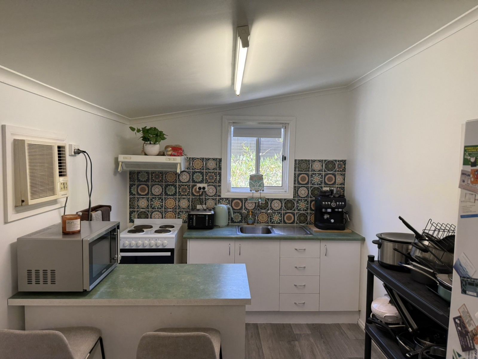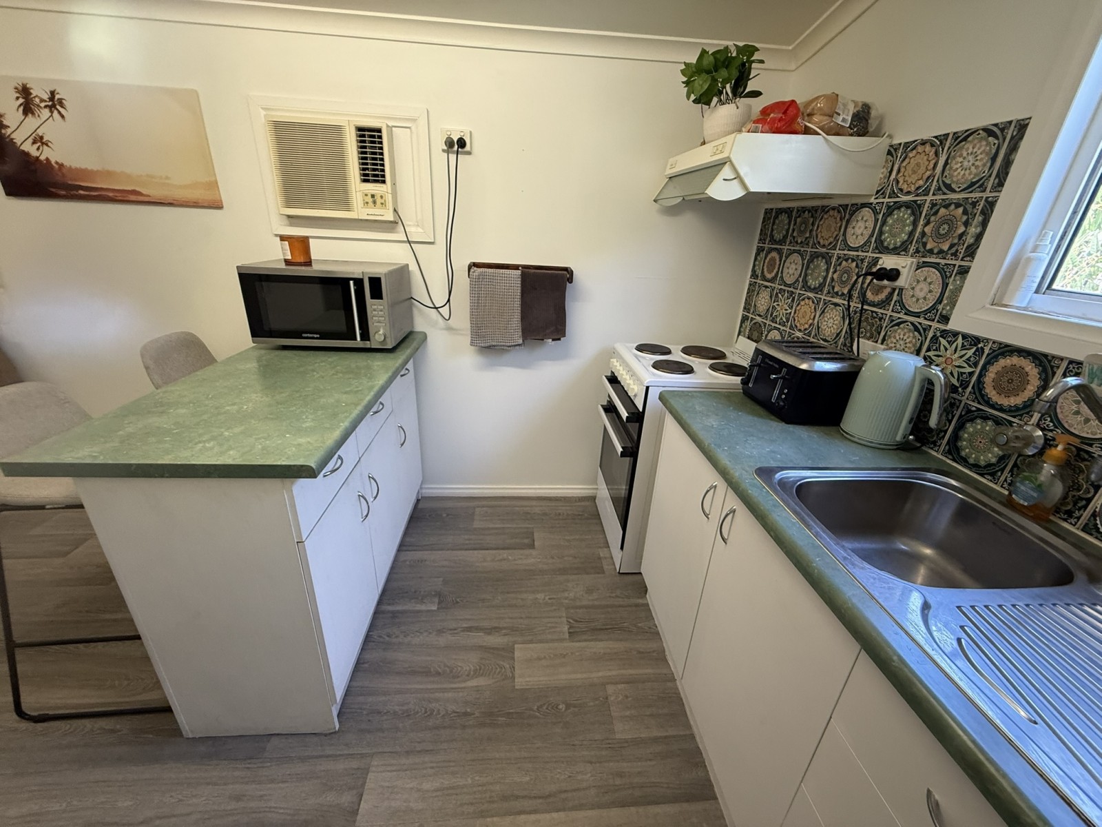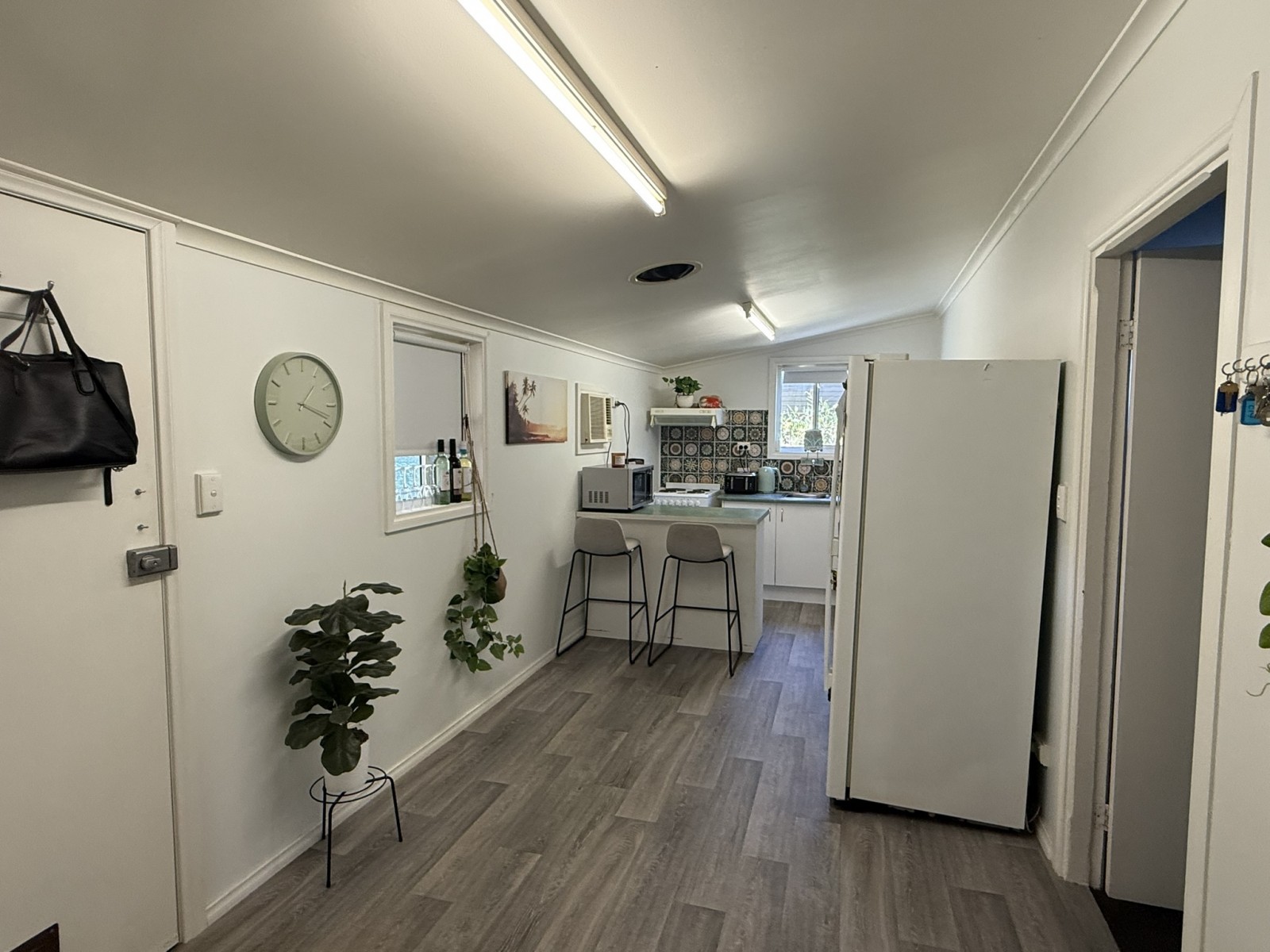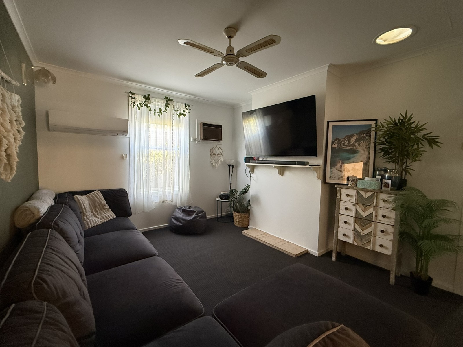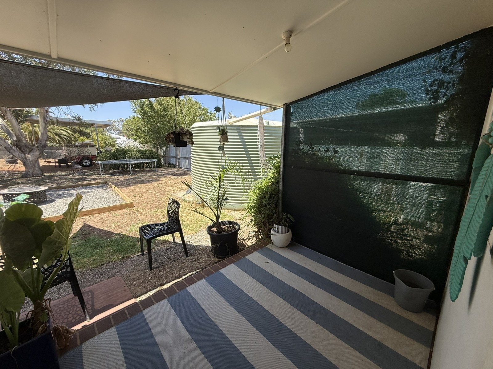 The bathroom is neat and tidy with shower and vanity, and the laundry is functional with scope to update if desired. At the front of the home, the verandah is fitted with new zip-lock blinds, creating a shaded and private space to enjoy, and Security Roller Shutters installed for peace of mind.