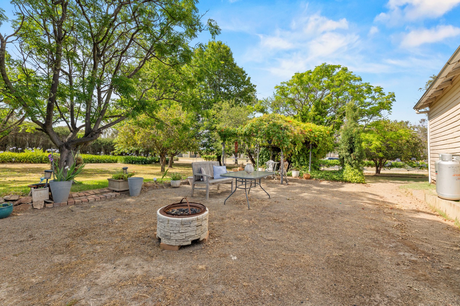 The weather board cottage sits privately surrounded by well-established shade trees and gardens with a rear paddock for pets, chooks or further shedding if required.