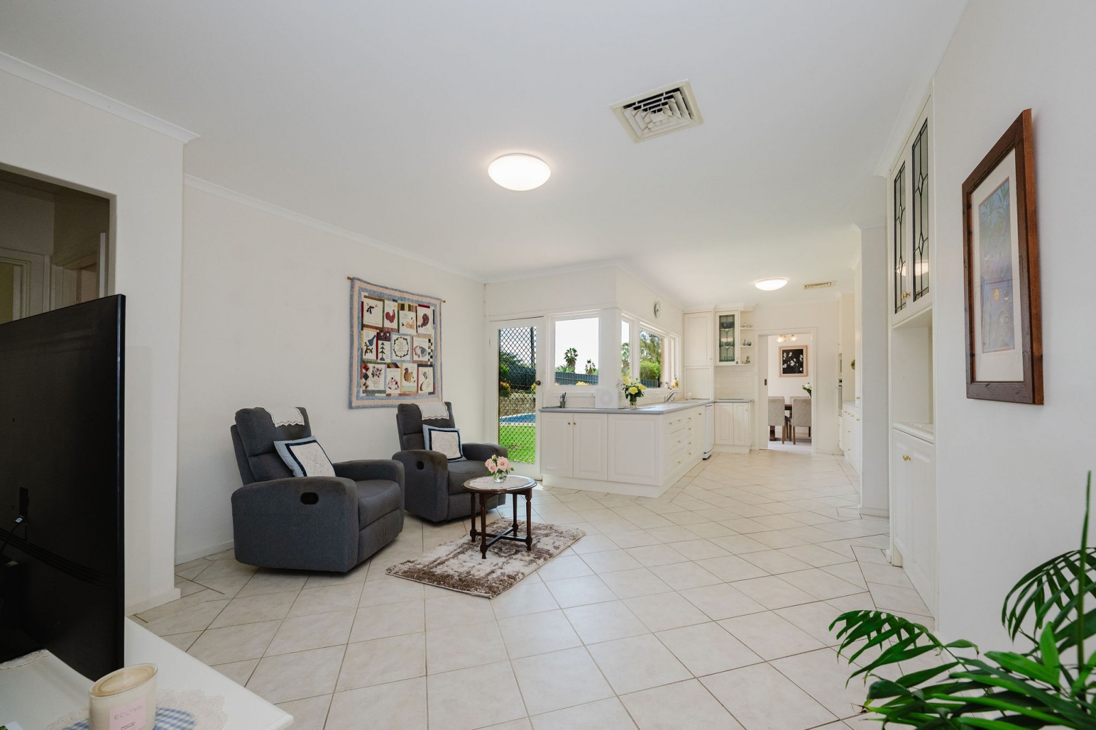 Step outside and discover a peaceful haven. The covered patio with vine-draped pergola overlooks lush lawns and beautifully established landscaped gardens. The 11m x 5m* fully tiled salt chlorinated pool has been newly fenced and creates the perfect setting for family enjoyment and entertaining.