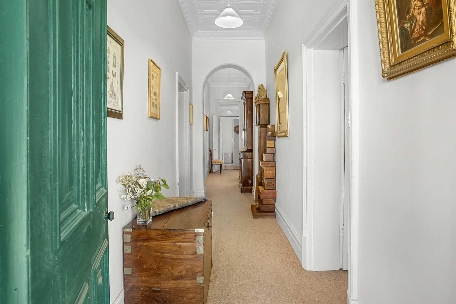 The historic residence built in 1908, is a beautiful double-fronted symmetrical stone home, showcasing timeless character with a surrounding bullnose verandah, feature quoining and stunning stonework sourced from the sandstone quarry within the property, all of which immediately sets the tone for this charming homestead. Inside, the home retains an abundance of original character including unique pressed tin ceilings throughout the living areas and bedrooms, soaring 11 foot ceilings and 13 inch thick walls, high skirtings and a wide central hallway with a striking arch feature and beautiful leadlight detailing surrounding the front door.