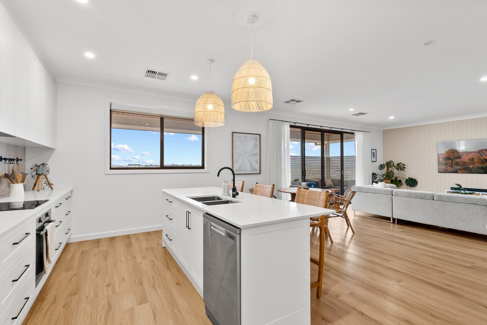 Step inside and immediately appreciate the striking Victorian Ash staircase, setting the tone for the quality found throughout. Upstairs forms the heart of the home, where light-filled open-plan living, dining, and kitchen spaces capture distant Port Hughes views and flow effortlessly to a spacious entertaining deck — ideal for hosting family and friends.