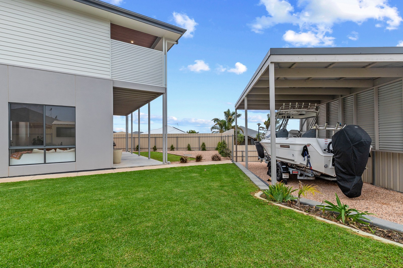 With double access, the property provides manicured lawns, irrigation, low maintenance yard and valuable side access with additional garaging, perfect for securely storing the boat, caravan, or trailer while still leaving plenty of room for kids and pets to play.