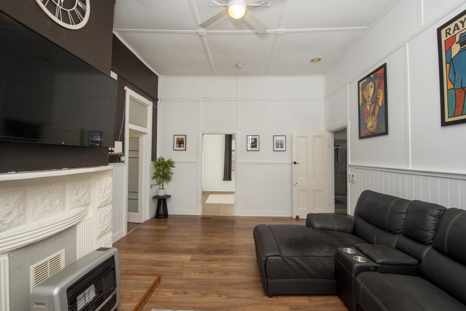 - Lounge with ornate fireplace, gas heater and split system airconditioner