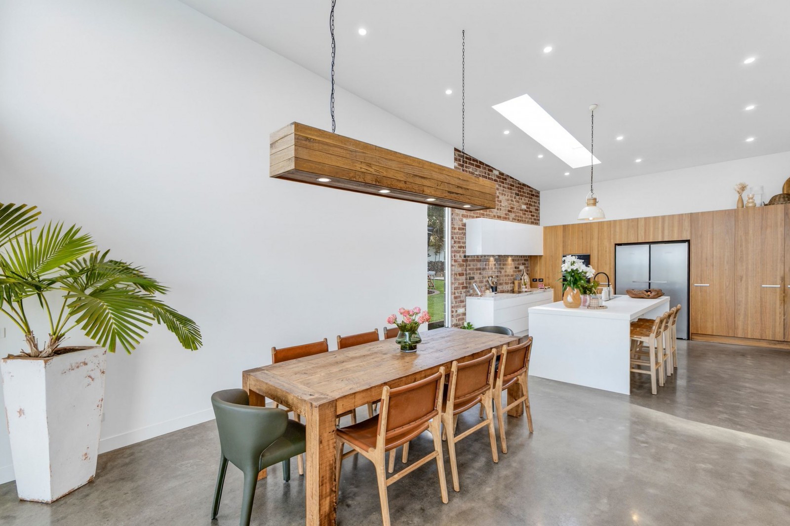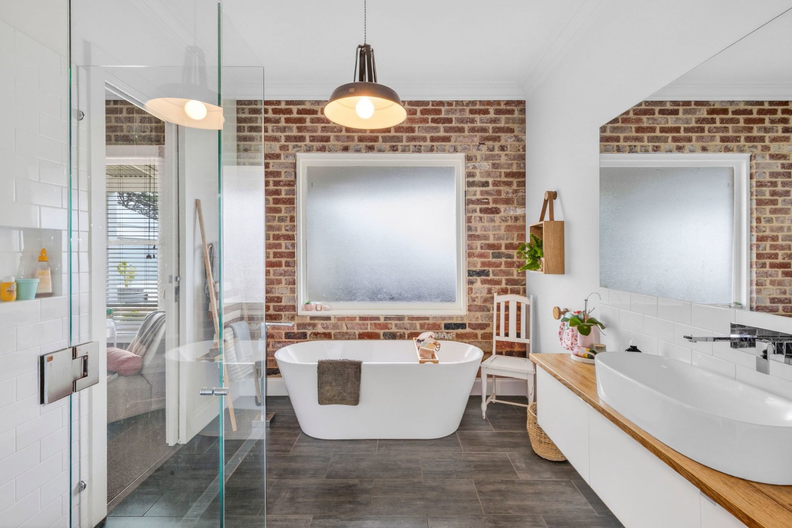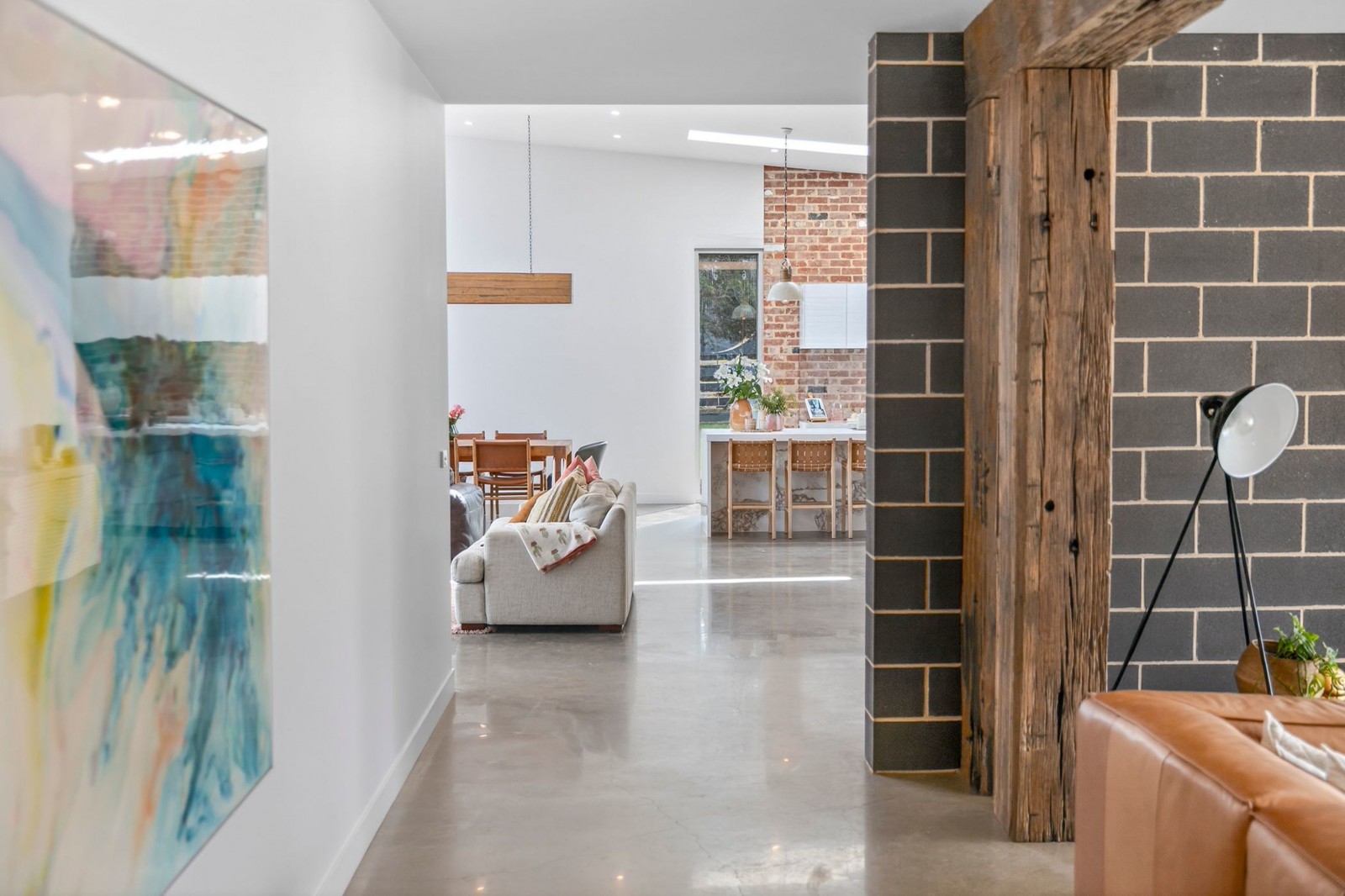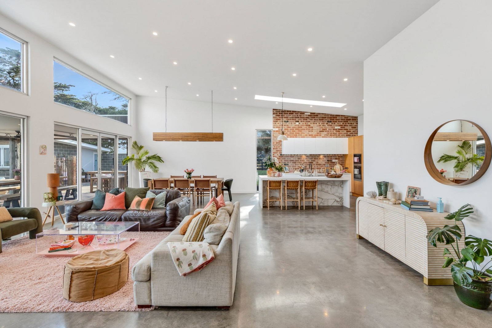 The architecture is both striking and timeless, combining Old Geelong red brick, reclaimed timber posts from Melbourne wharfs, and expansive glazing.