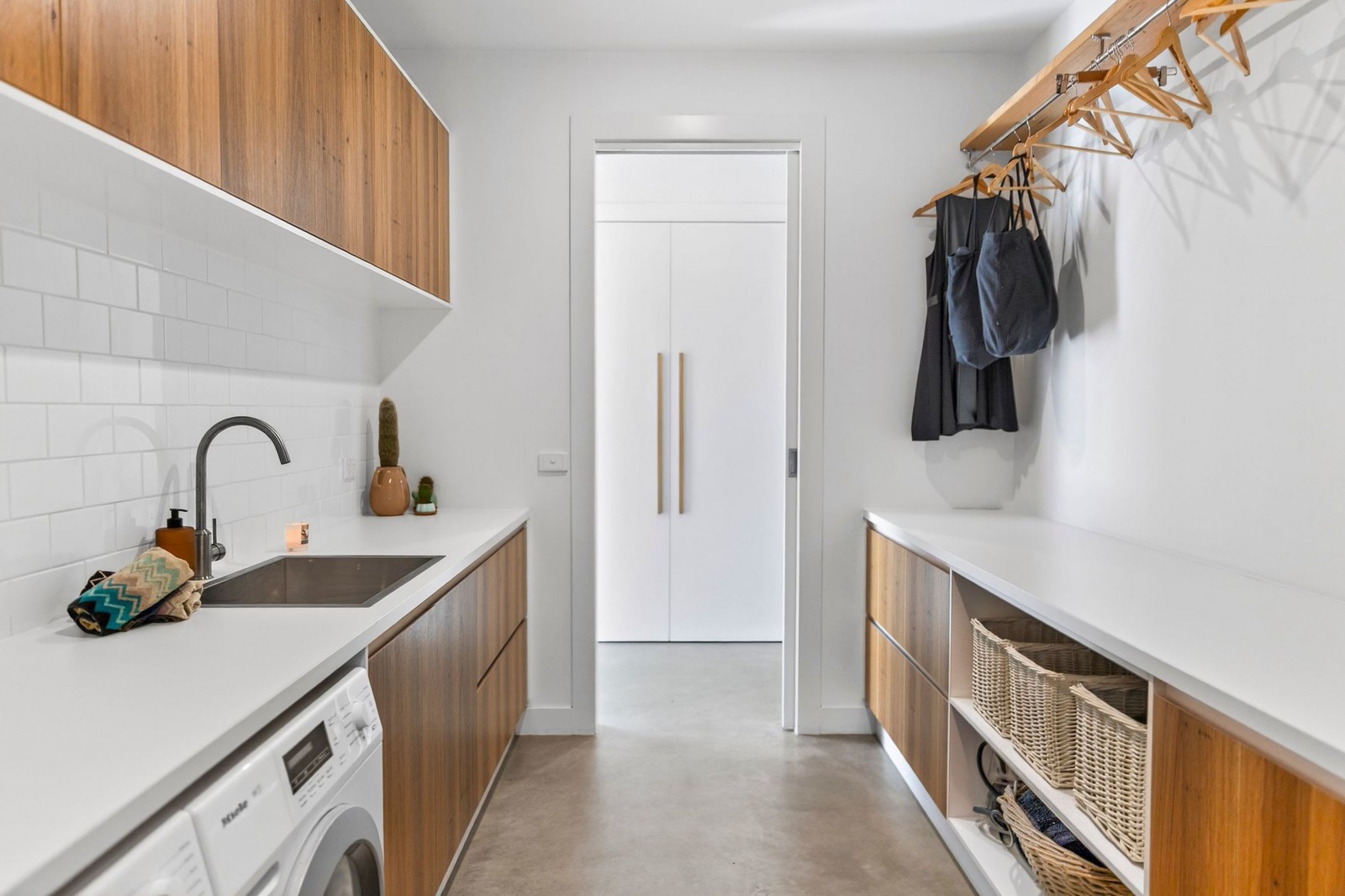 Distinct wings are connected by glazed breezeways, reinterpreting the traditional homestead in a contemporary form. High ceilings, bespoke joinery, timber floors, and plush wool carpets soften the accommodation areas, while polished concrete floors define the main living zones. Large windows throughout create a seamless connection between indoors and the surrounding Barrabool Hills landscape.