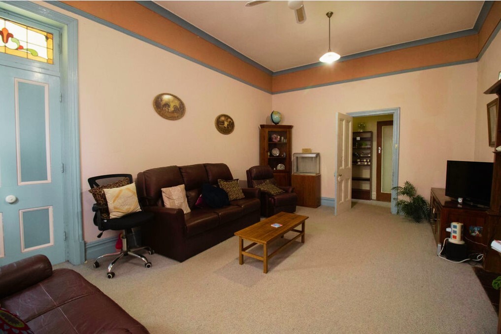 Set on an expansive 1,900m²* corner allotment with dual road access, the property is ideal for families, tradespeople or those seeking room to grow. The home’s classic bullnose return verandah and timeless stone façade create scope to return it to its former glory. Inside, lofty ceilings and generously proportioned rooms highlight the home’s character, while practical features ensure comfortable everyday living.
