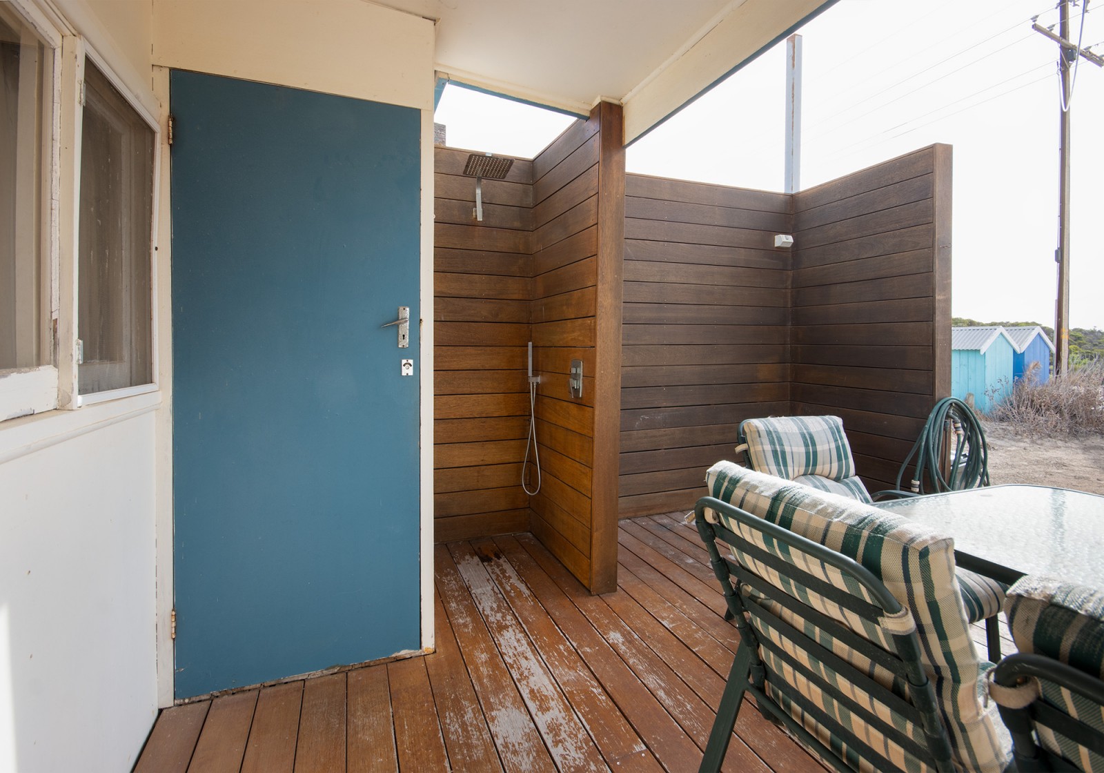 Outside features include a rear deck, open outdoor shower, carport, front verandah with decking, and side verandah.