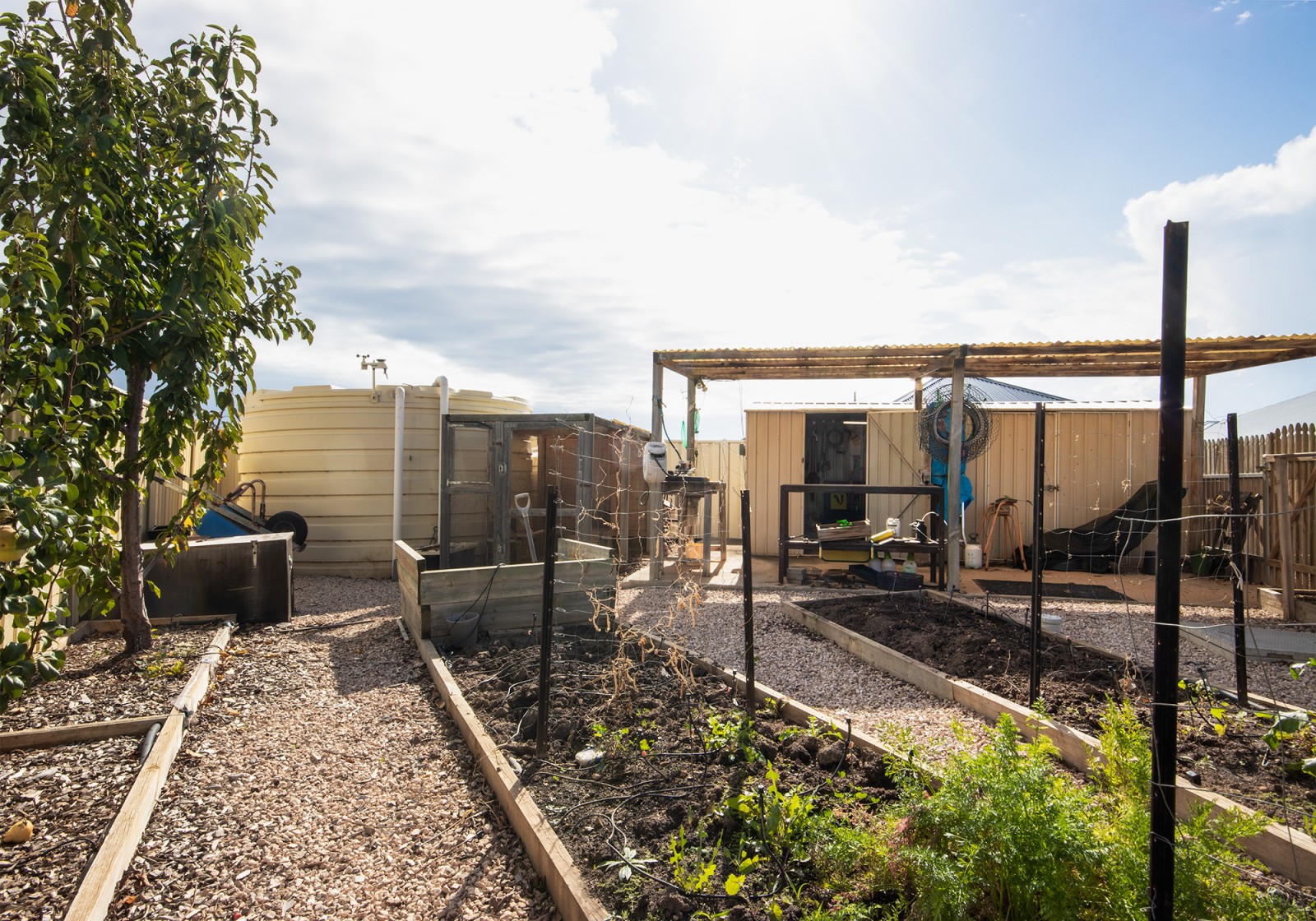 - Handy toolshed and rainwater tank plumbed directly to the lawns and garden via an automated system for sustainable watering.