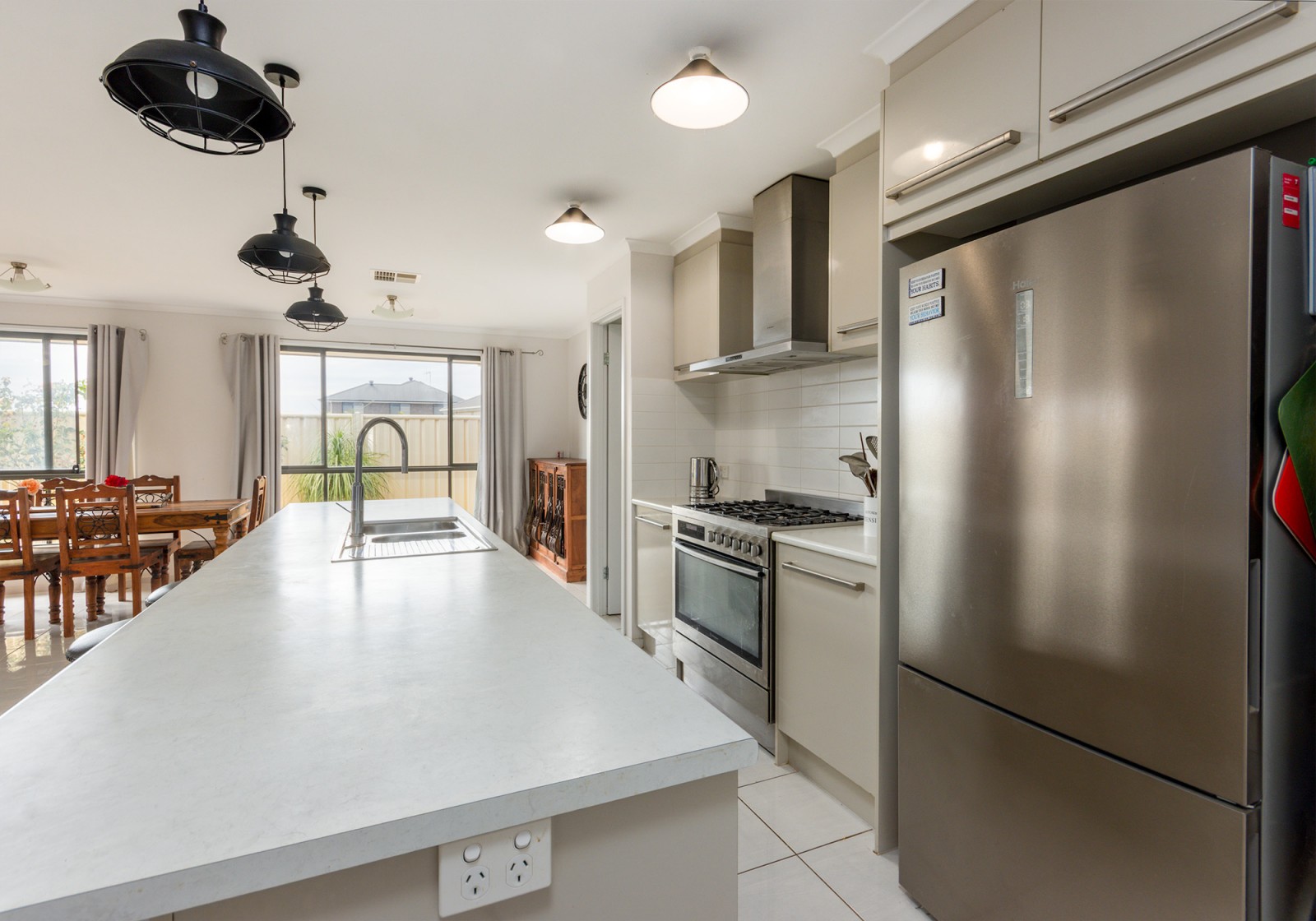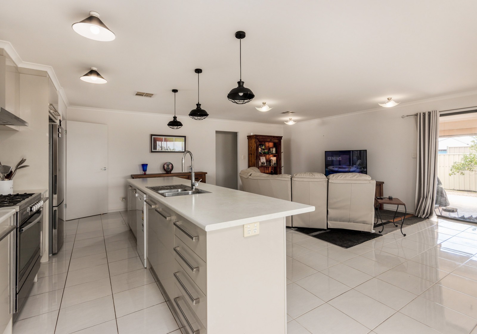 - A modern kitchen with a large gas cooktop, dishwasher, and walk-in pantry, seamlessly flowing into a large open-plan living and dining zone – ideal for everyday living and special occasions alike.