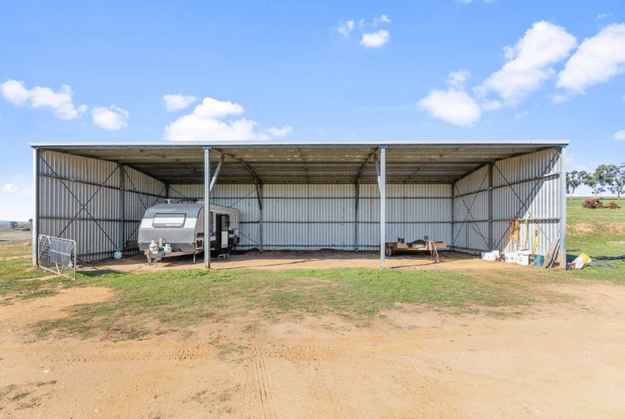 Good set of steel cattle yards with machinery and hay shed and a 2 stand shearing shed