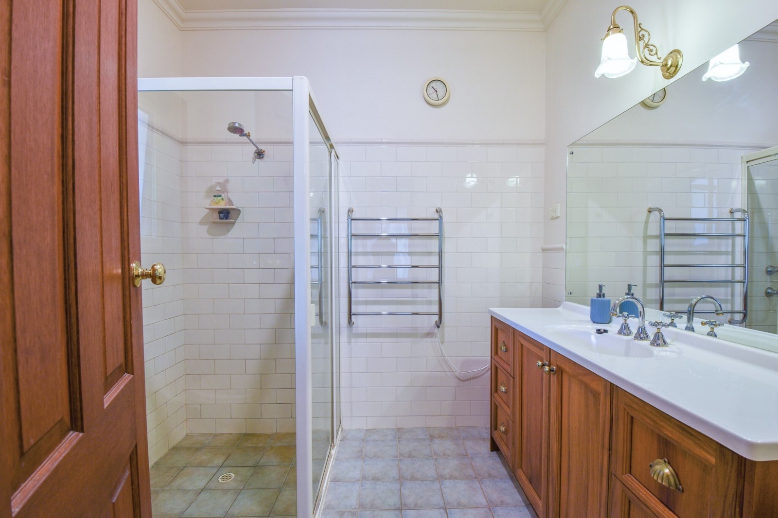 Outdoor living is well catered for, with an alfresco area overlooking established gardens, providing a practical space for entertaining or relaxing.